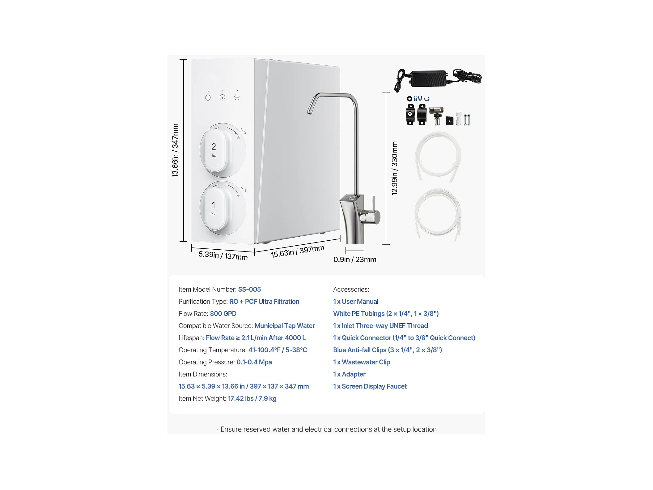 Filtre à Eau Sous Évier à Osmose Inverse Sans Réservoir SucceBuy 800 GPD 8 Étapes