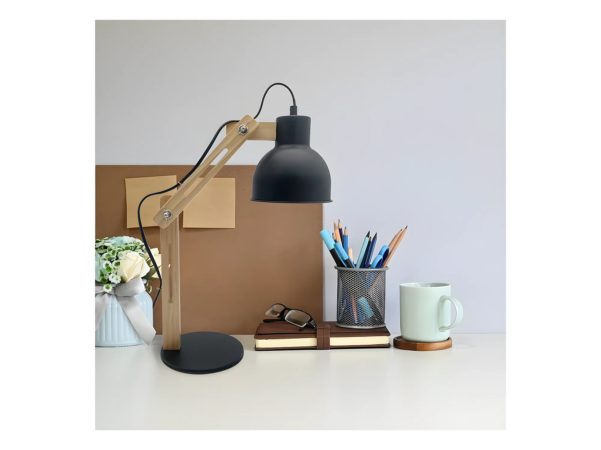 Flexo Articulable modèle Baptista 1luz Noir/hêtre FABRILAMP