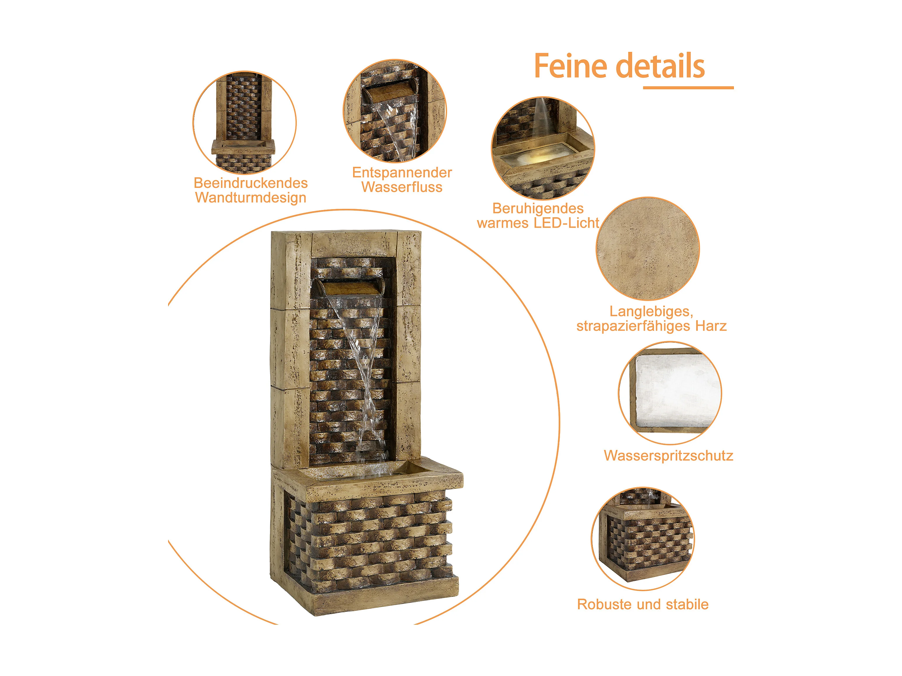 Fontaine de jardin ZENYATTA LED Marron