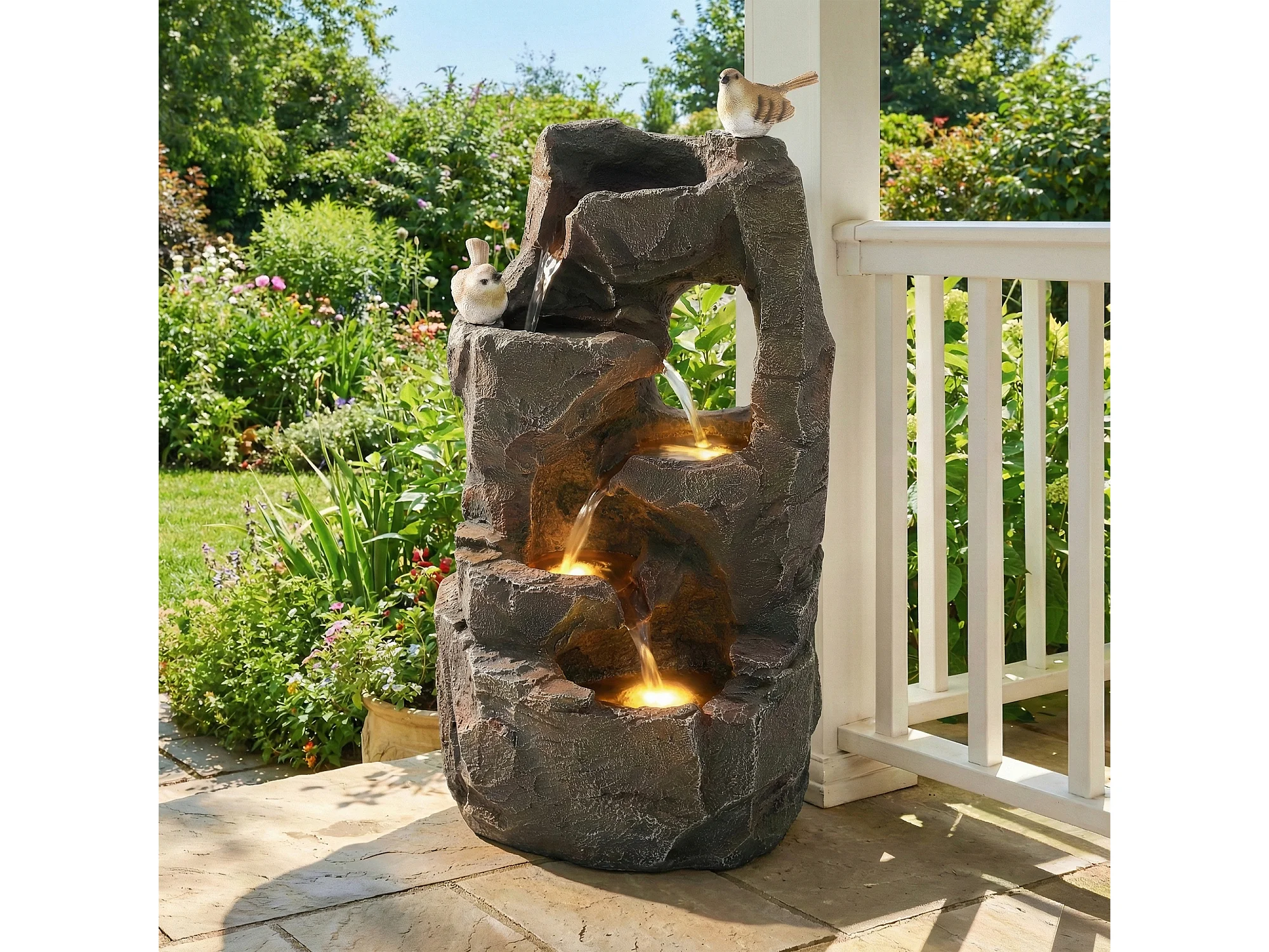 Fontaine d'extérieur pour jardin/terrasse/balcon/pelouse - 25.5 x 19 x 47 cm - avec Leds - Résine - gris