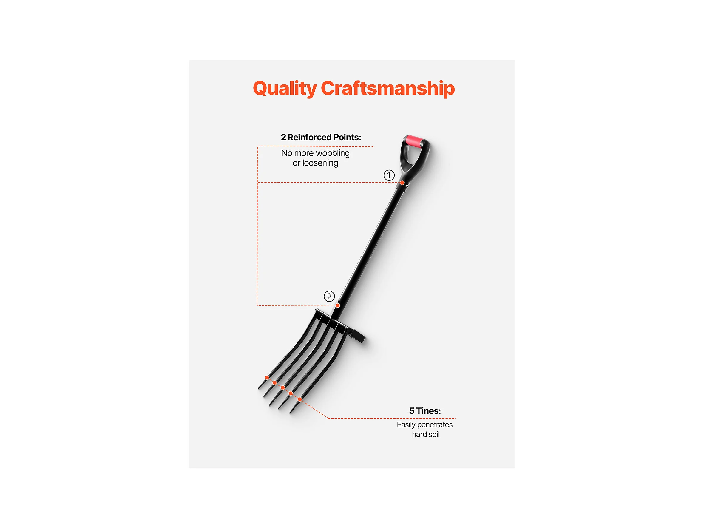 Fourche à Bêcher SucceBuy 5 Dents, Outil de Jardinage avec Manche en Métal Solide, Longueur Totale de 105 cm, Poignée en Y Ergonomique, Idéale pour Creuser
