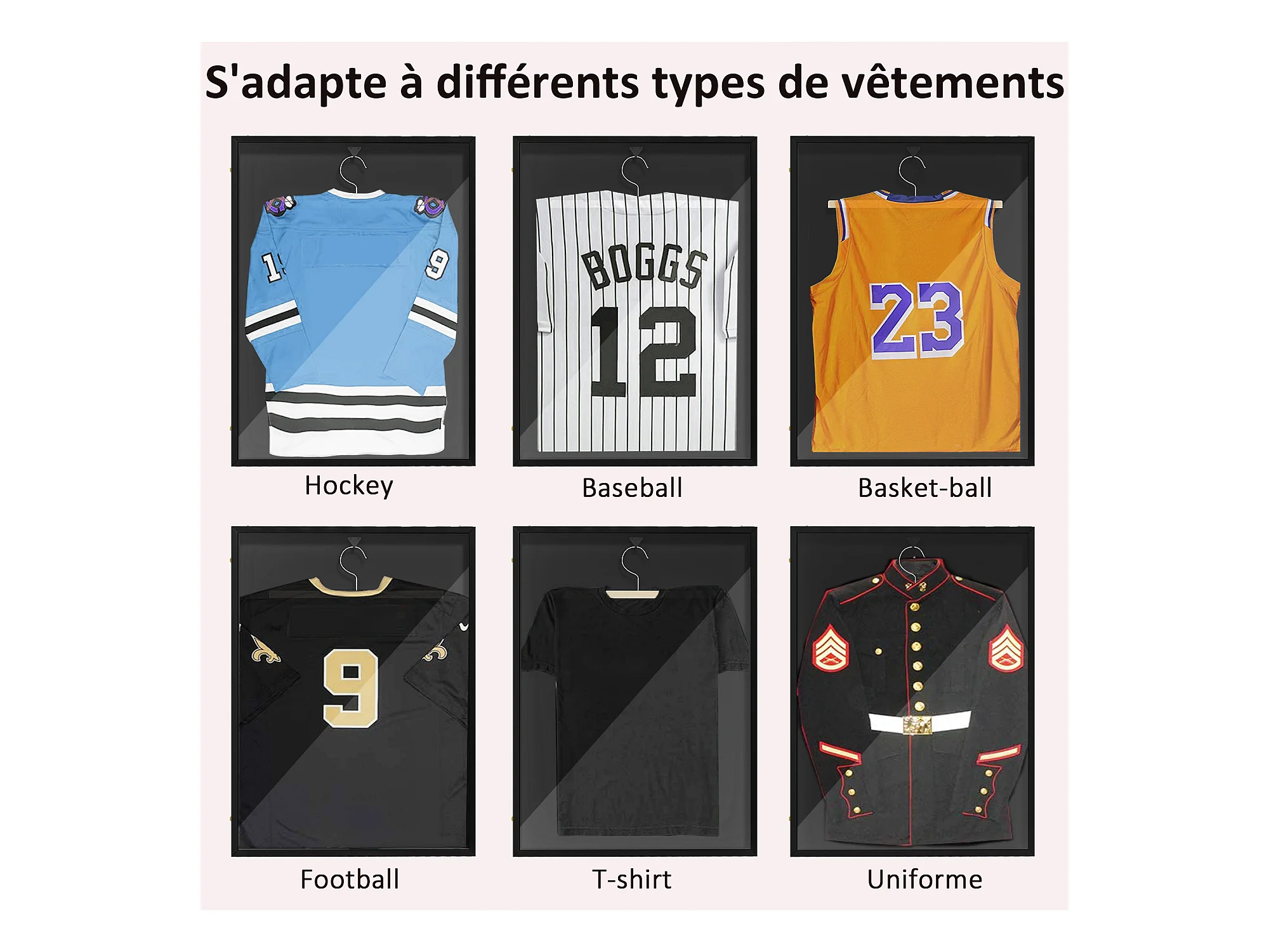 Frame box T-frame cadre aluminium pour maillot porte acrylique doublure interne feutre 60 x 80 cm noir