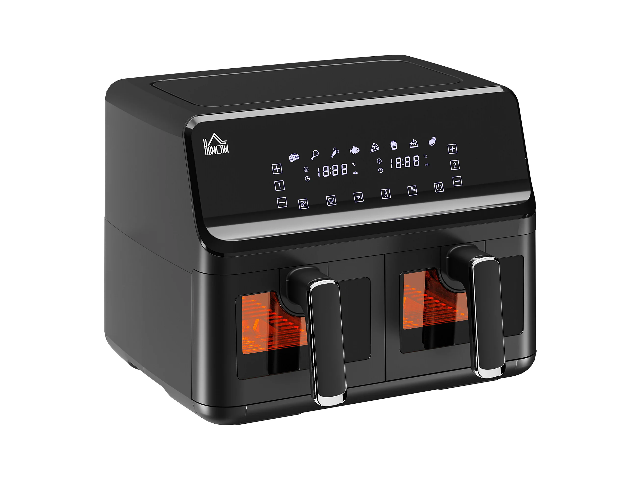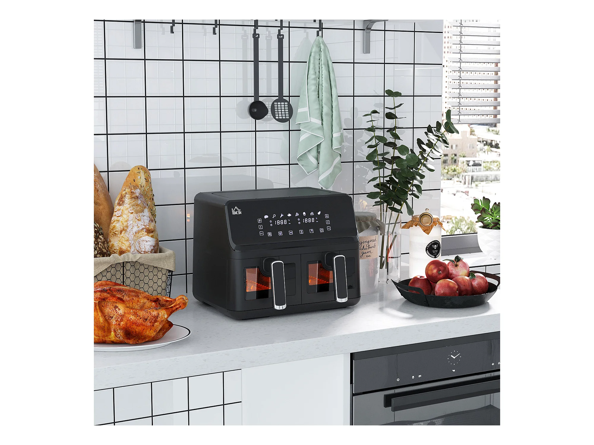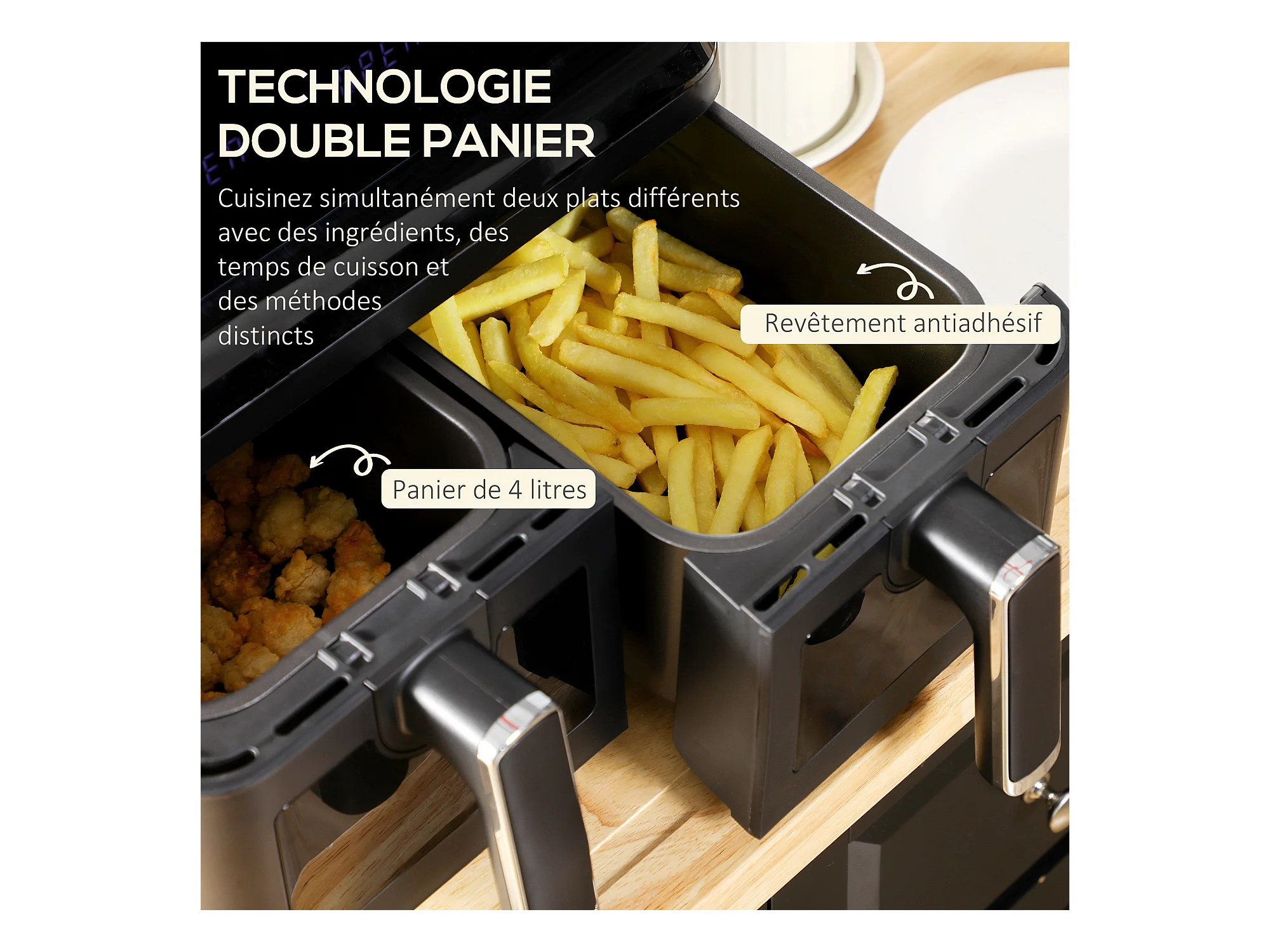 Friteuse à air 2 paniers 2500W 8L - air fryer multifonction 8 programmes - température réglable - timer 60 min. - noir