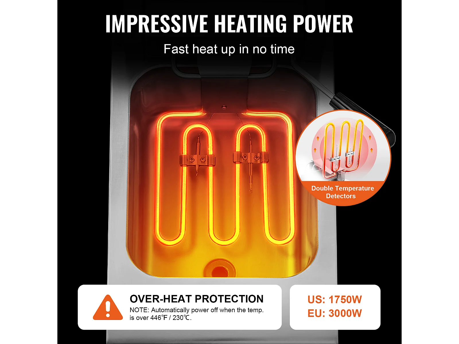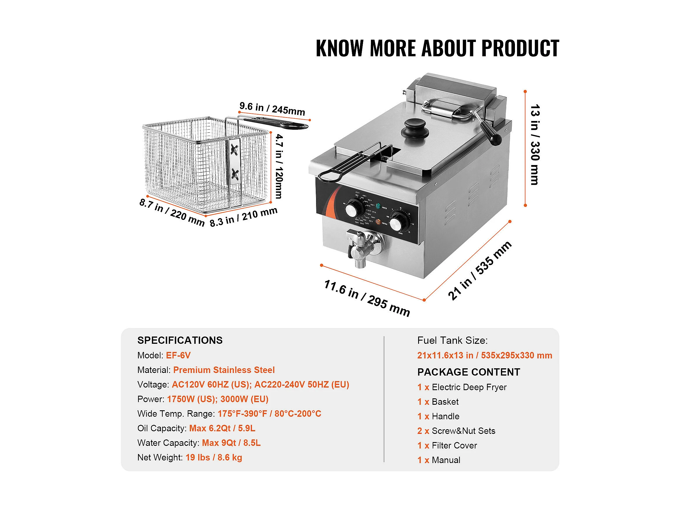 Friteuse SucceBuy Commerciale de Comptoir 8,5 L 1750 W, Conçue pour Usage Intensif dans les Établissements de Restauration Rapide