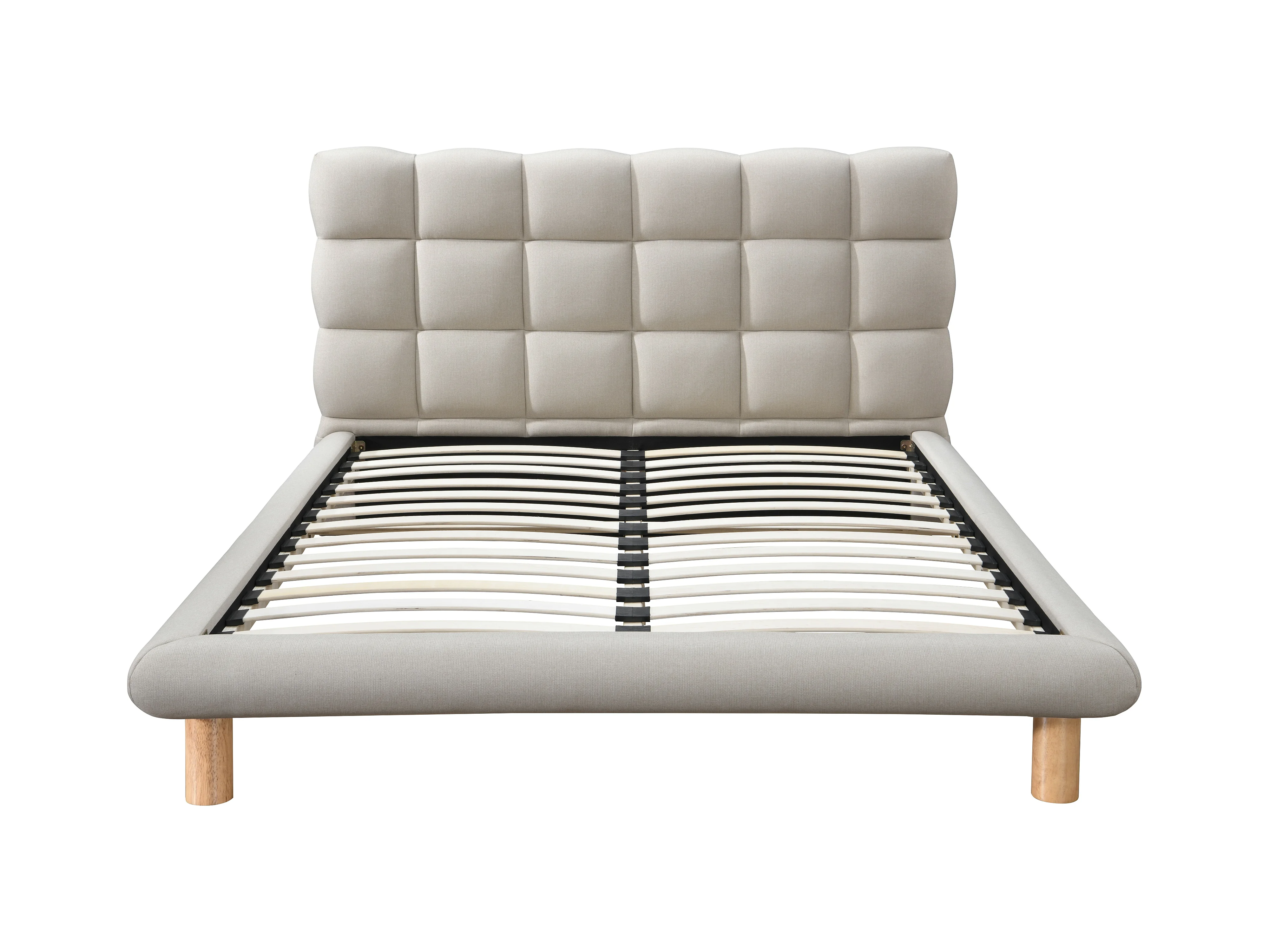 Lit avec tête de lit matelassée 160 x 200 cm - Tissu - Beige - FUDALI