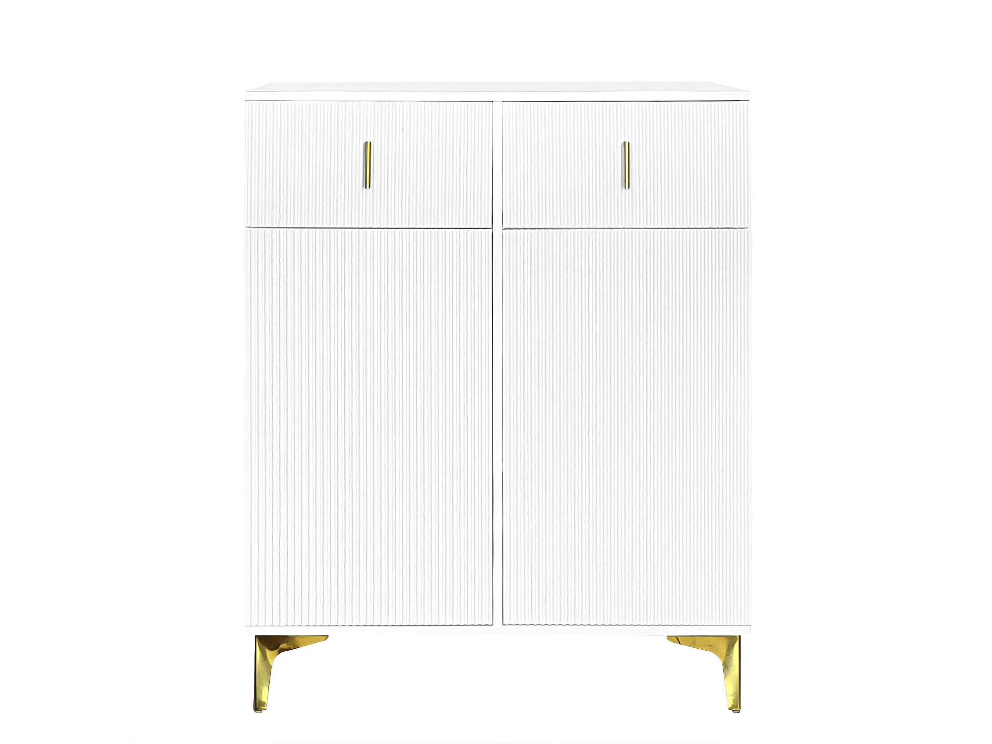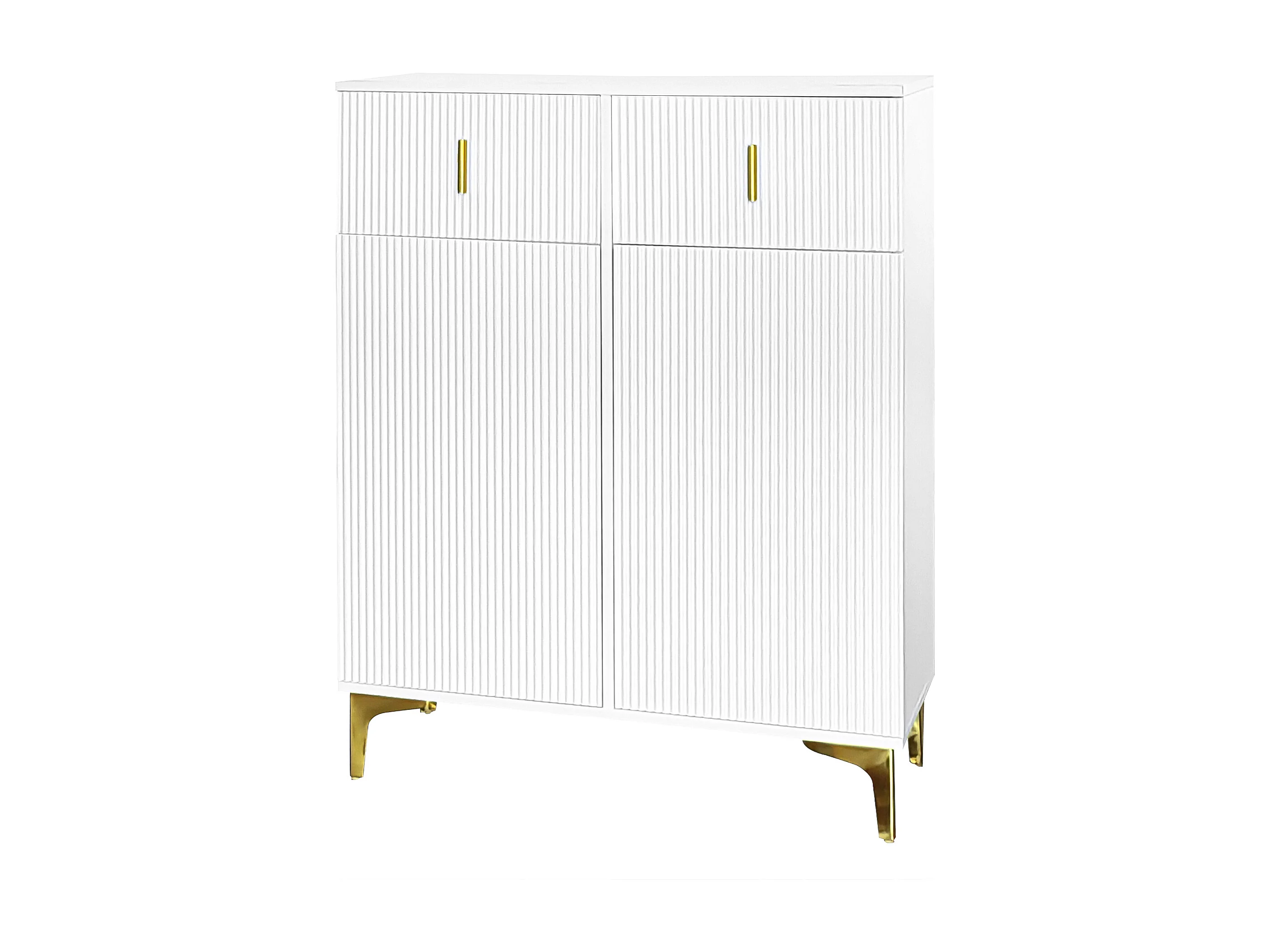 Ensemble vestiaire 60.5x35.2x180.5 cm et banc à chaussures 83x35x101 cm, 2 tiroirs, 2 portes, coussin, panneaux ondulés, panneaux de particules, blanc