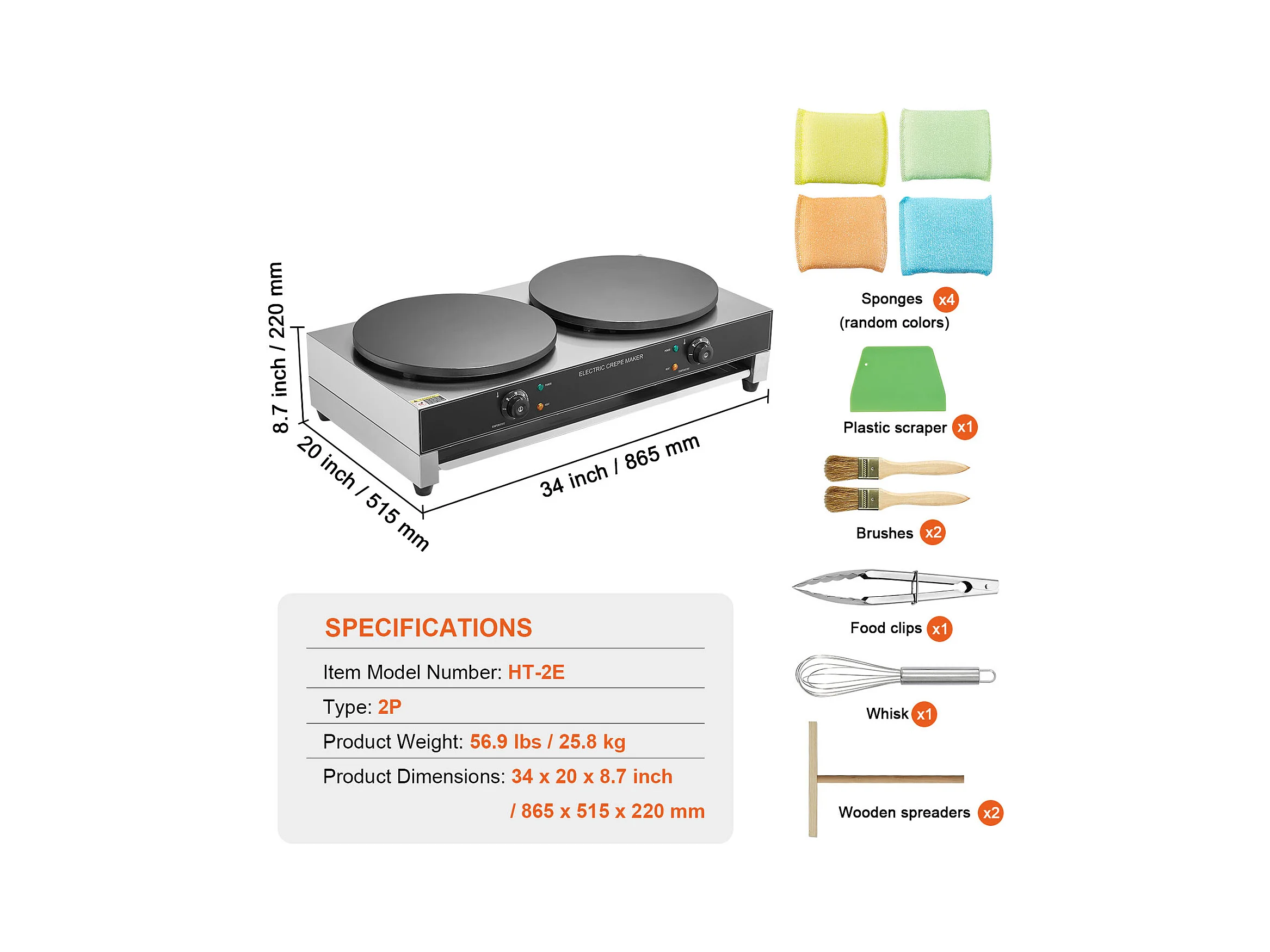Gaufrier SucceBuy Crêpière Électrique 40.6cm 3400 W à Double Tête Commerciale