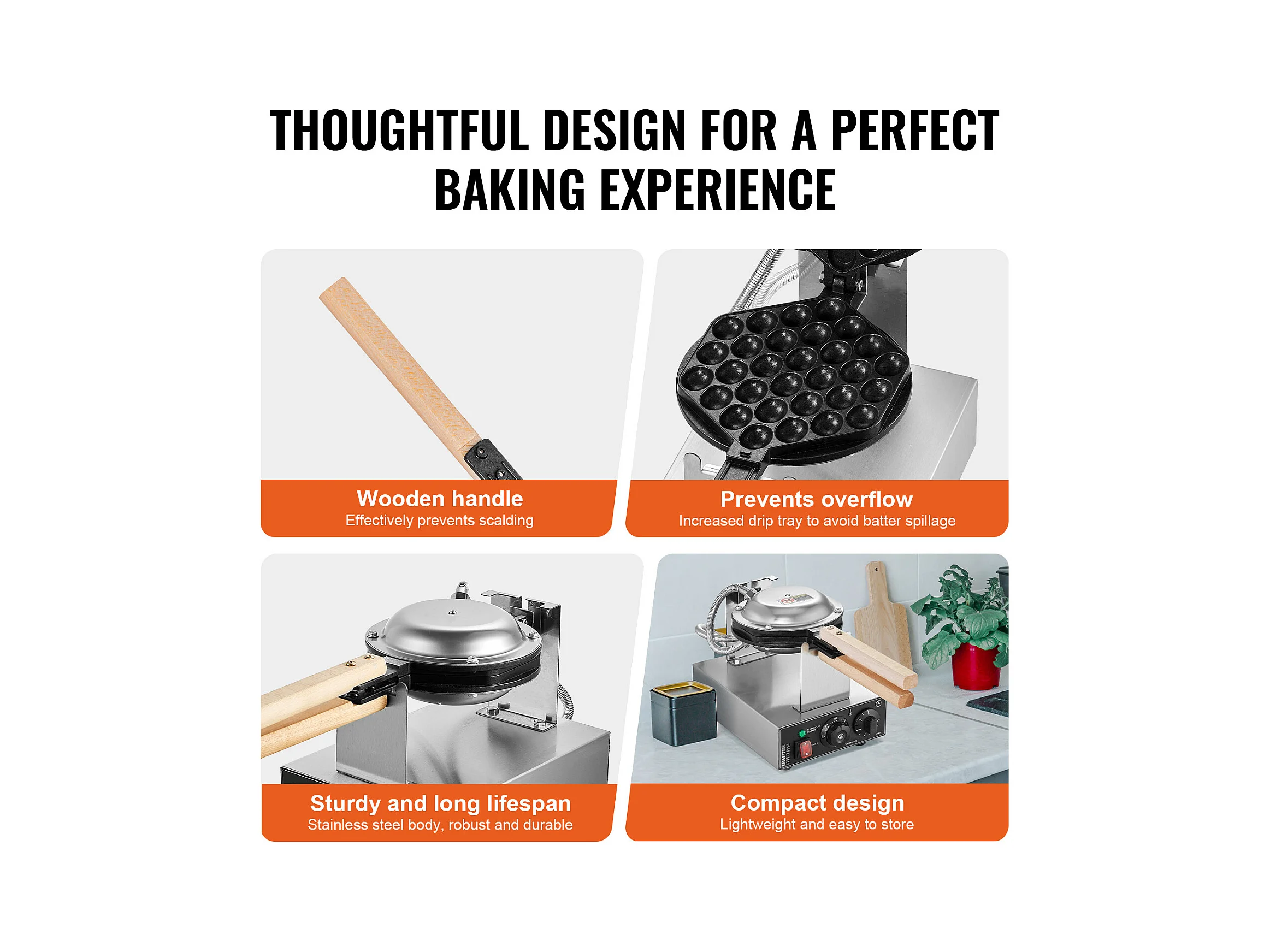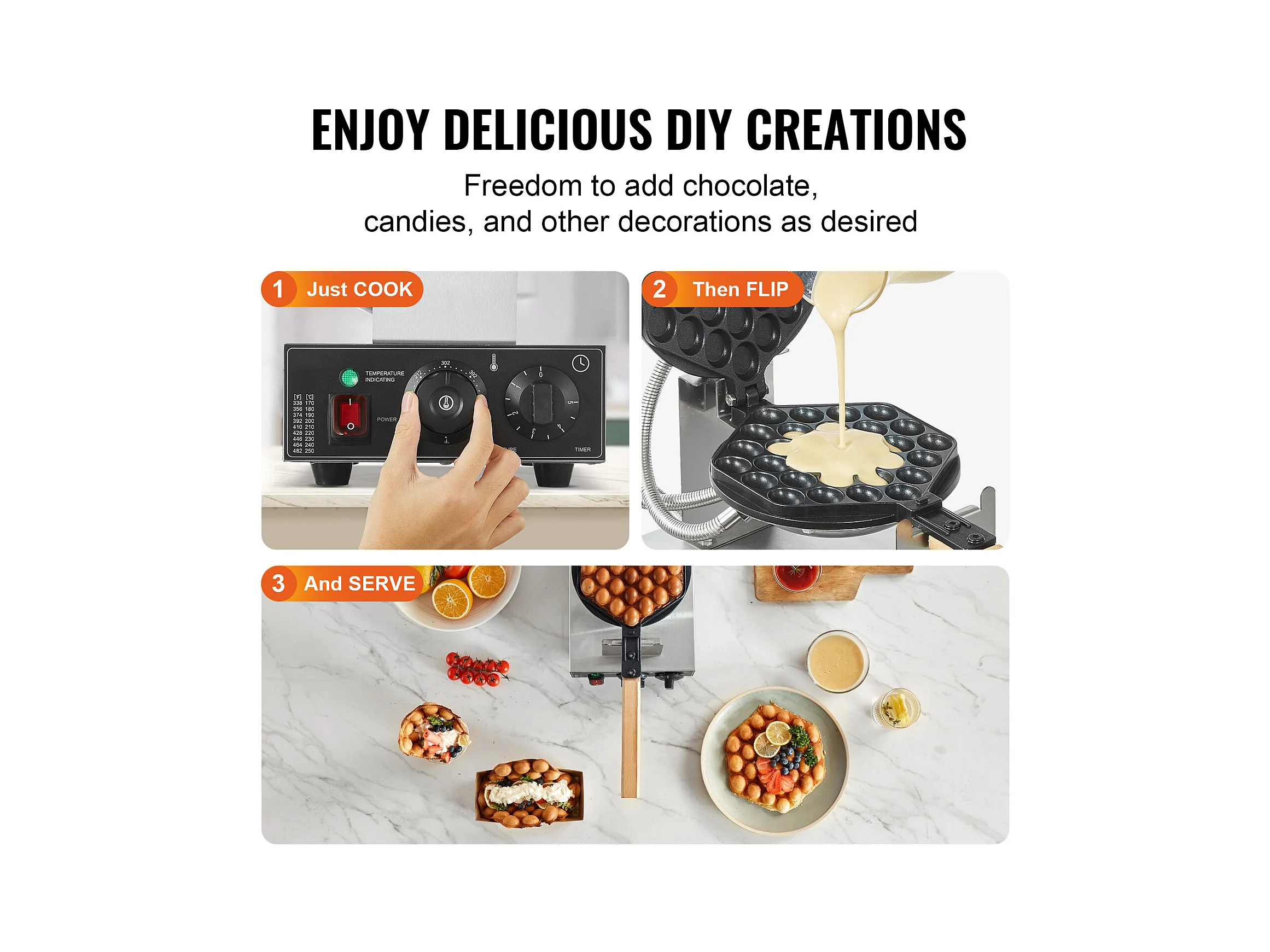 Gaufrier SucceBuy Gaufrier à Bulles Commercial 1400 W Antiadhésif pour Crêpes aux Œufs