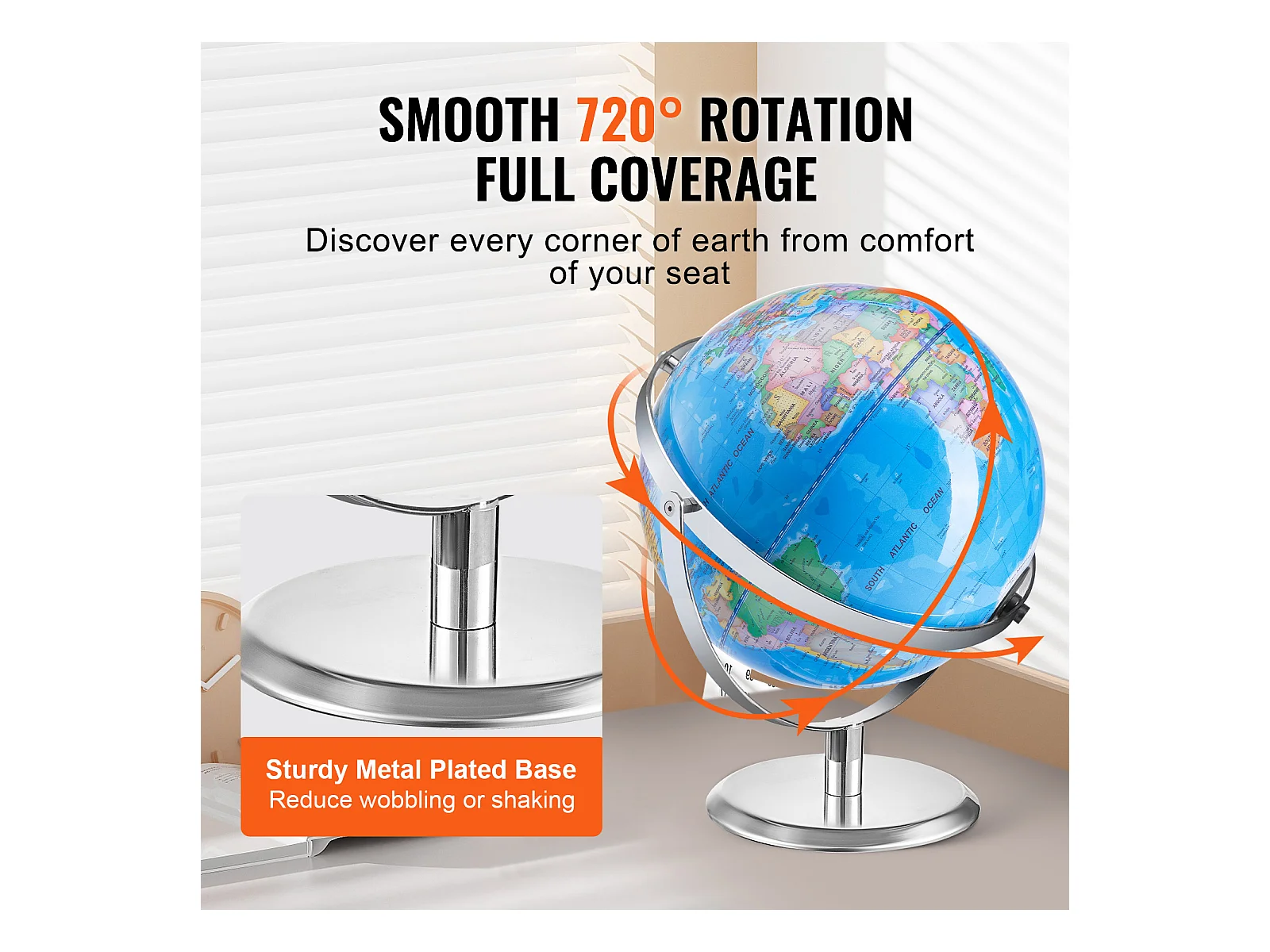 Globe Terrestre SucceBuy Parlant, 228,6 Mm, Globe Interactif pour L'apprentissage Précoce des Enfants, avec Stylo Intelligent, Veilleuse LED, Interface USB