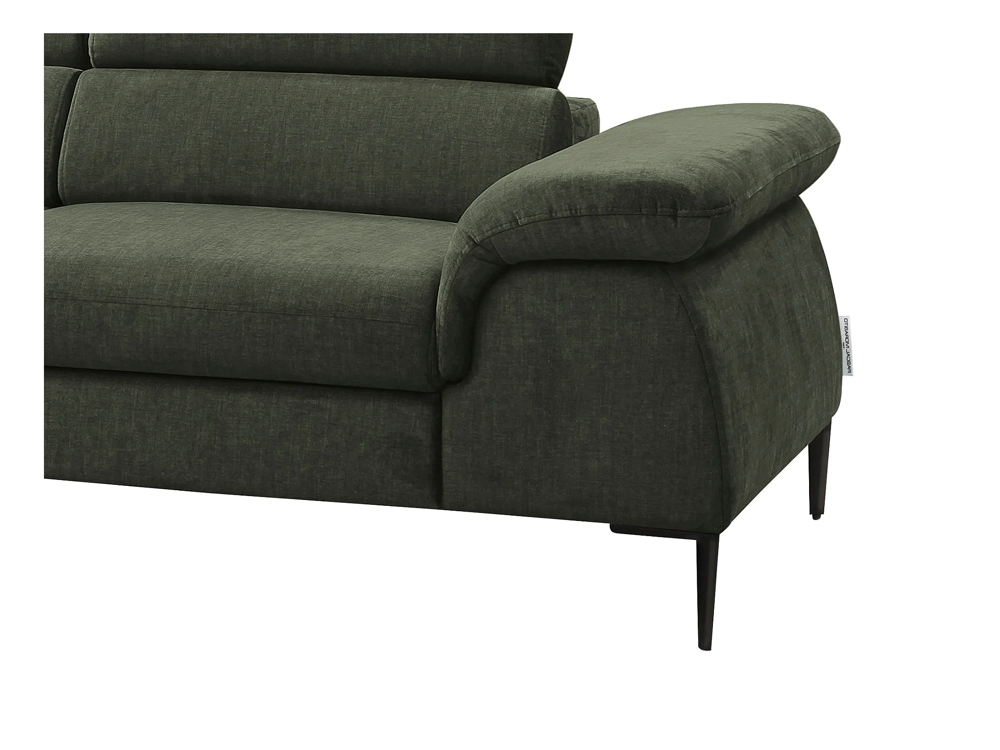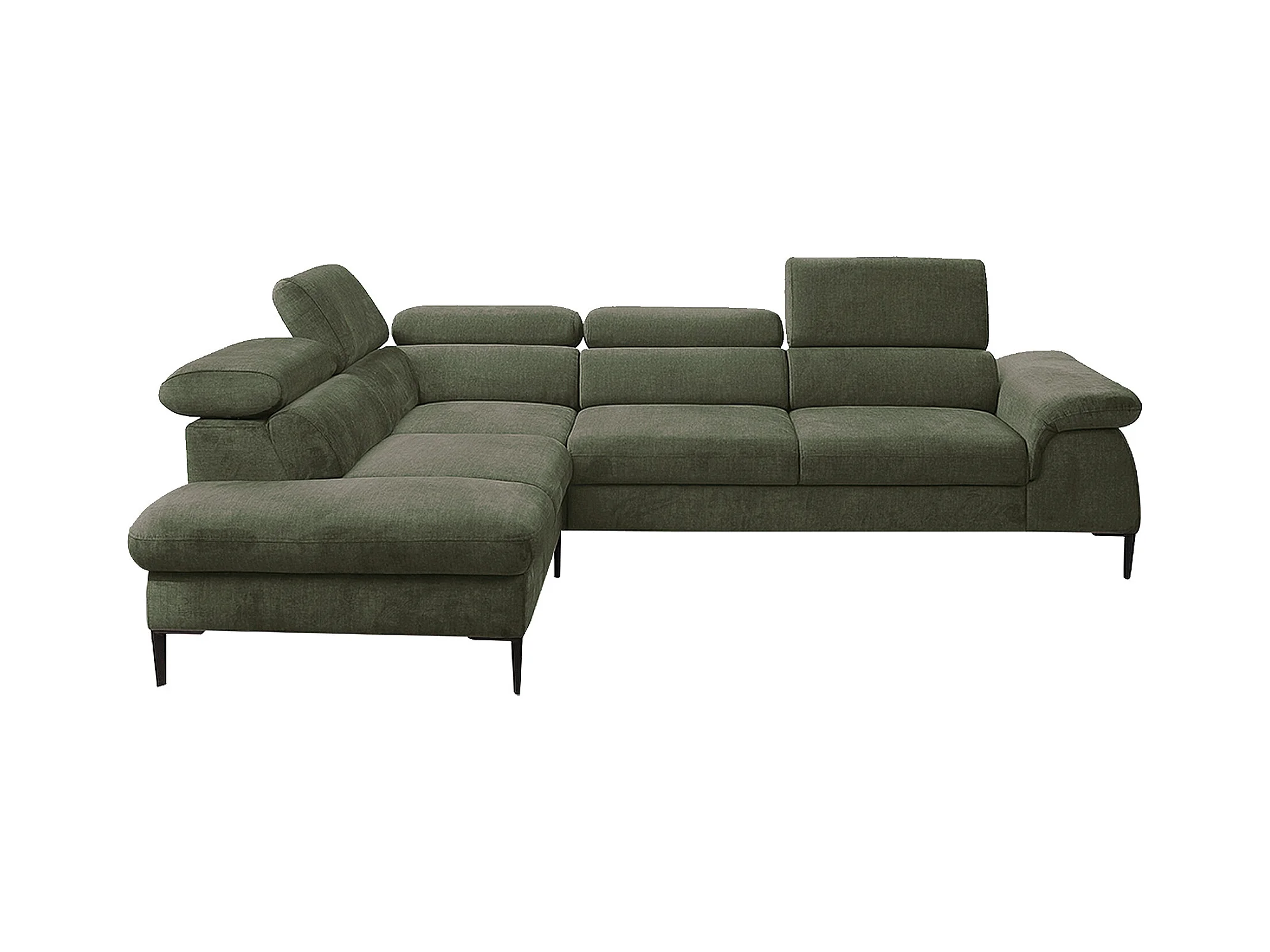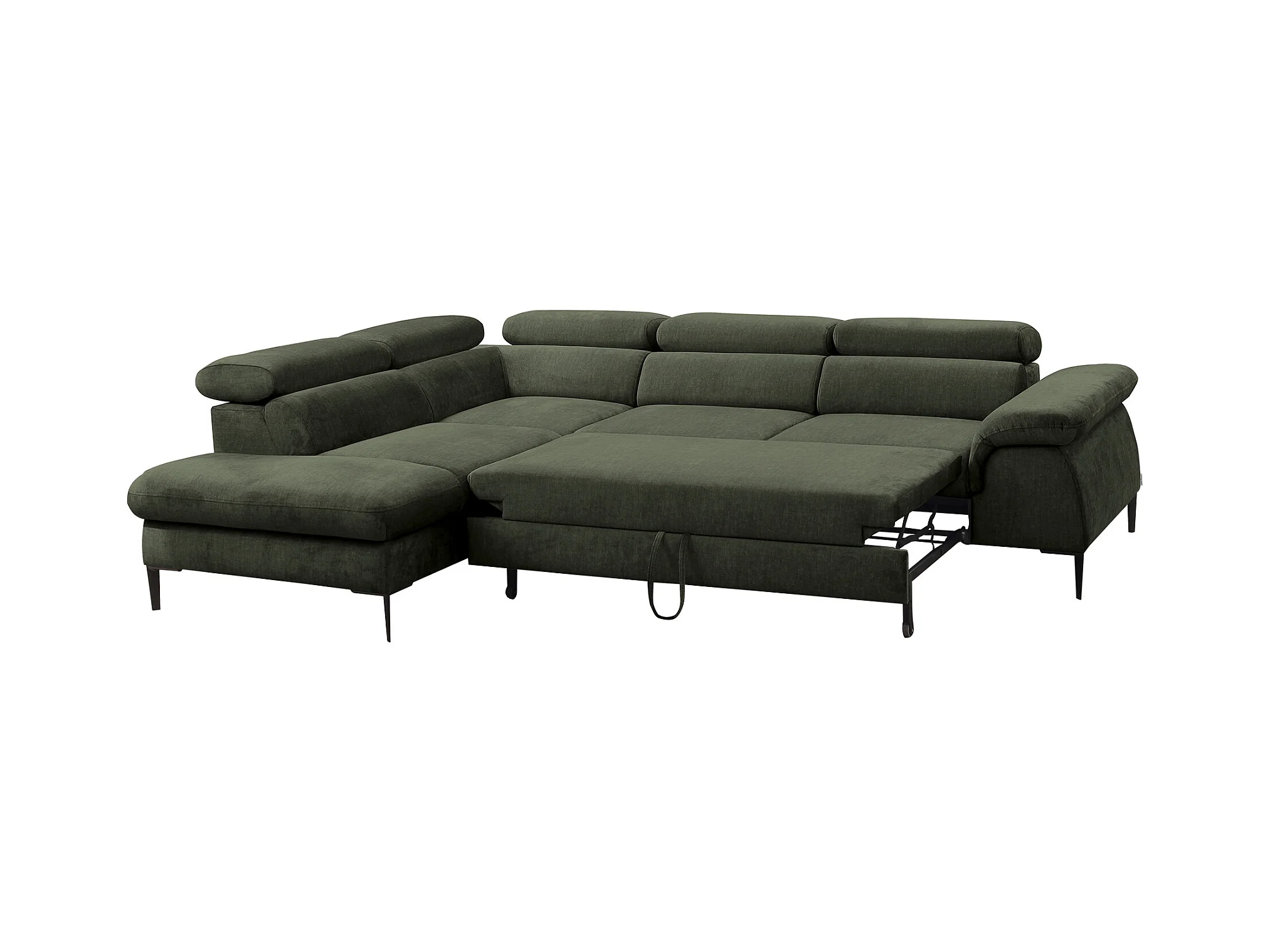Grand canapé d'angle gauche convertible en velours vert SEPINA de Pascal Morabito