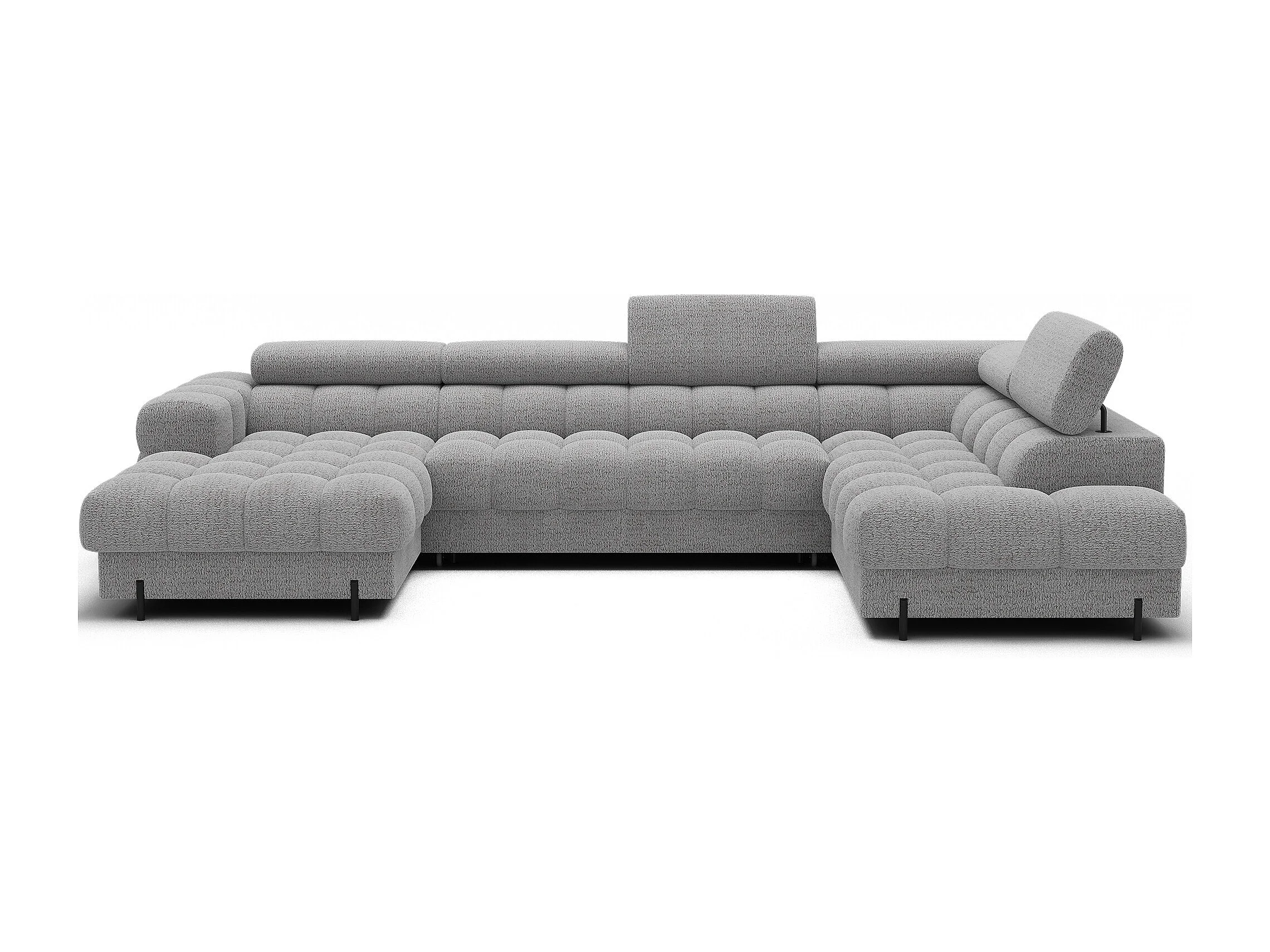 Grand canapé panoramique avec têtières réglables tissu FUZIAN – Fonction lit-Gris clair chiné-Coffre à gauche