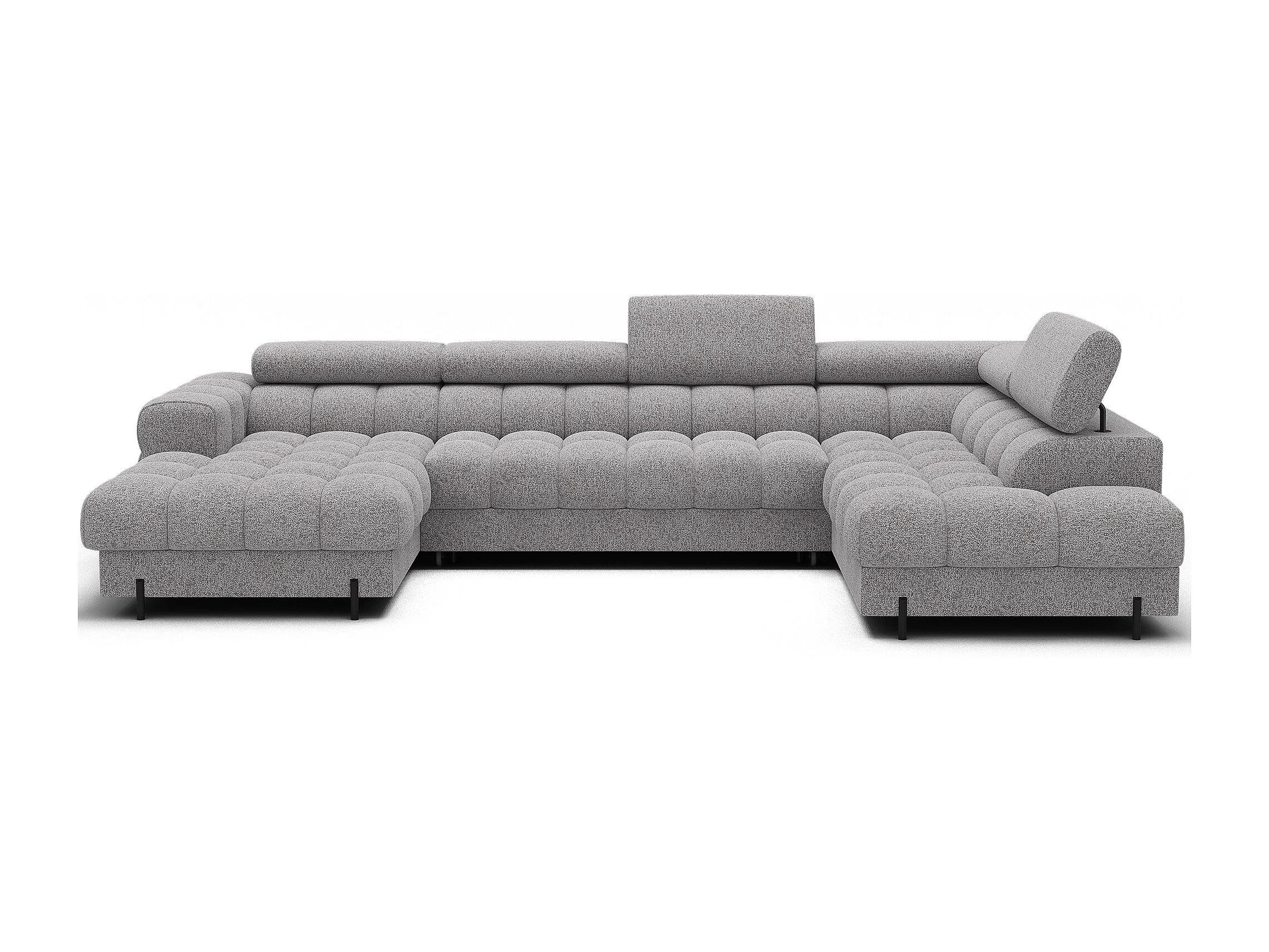 Grand canapé panoramique avec têtières réglables tissu FUZIAN – Fonction lit-Gris clair chiné-Coffre à gauche
