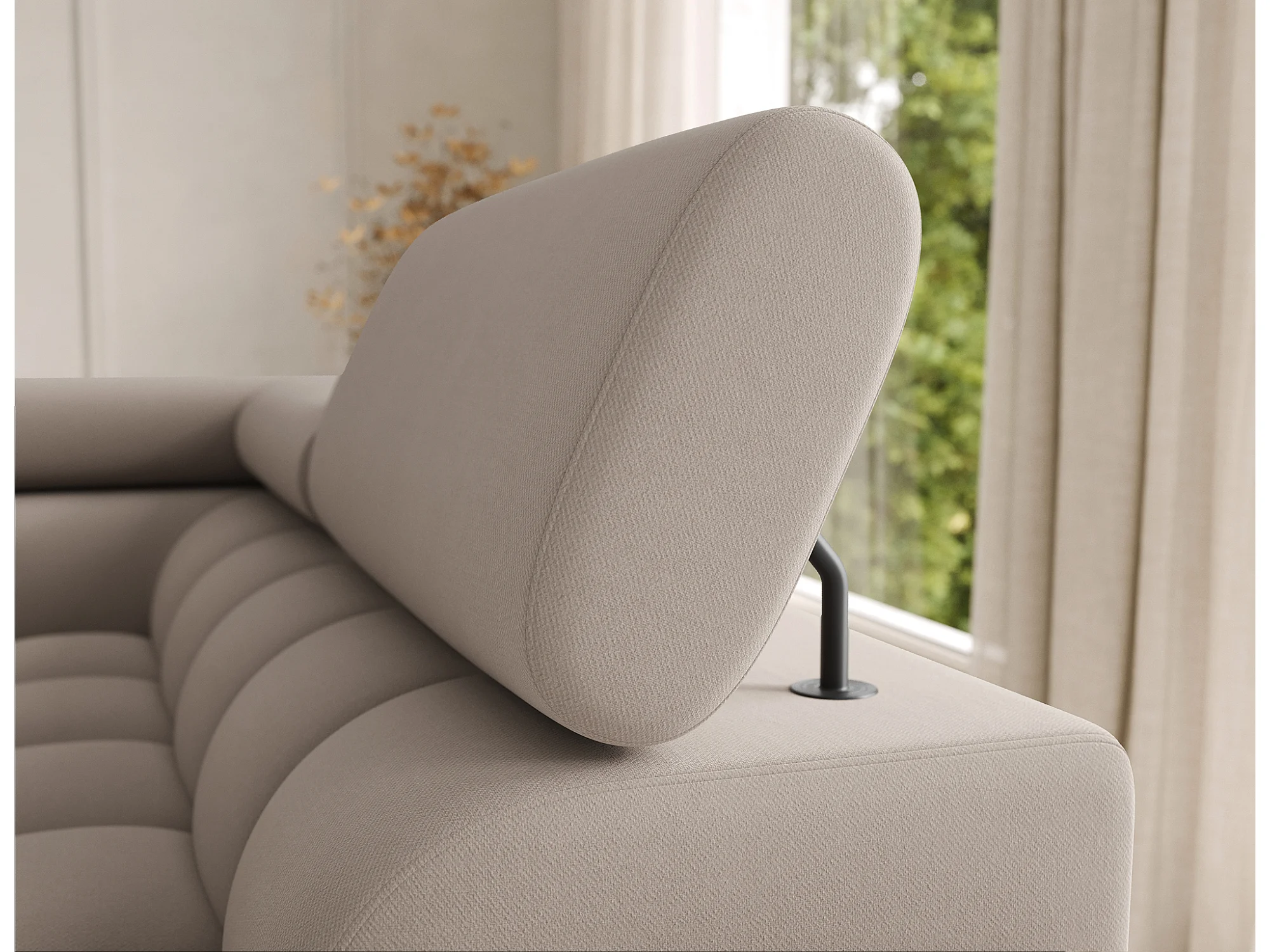 Grand canapé panoramique avec têtières réglables tissu FUZIAN – Fonction lit-Gris clair chiné-Coffre à droite