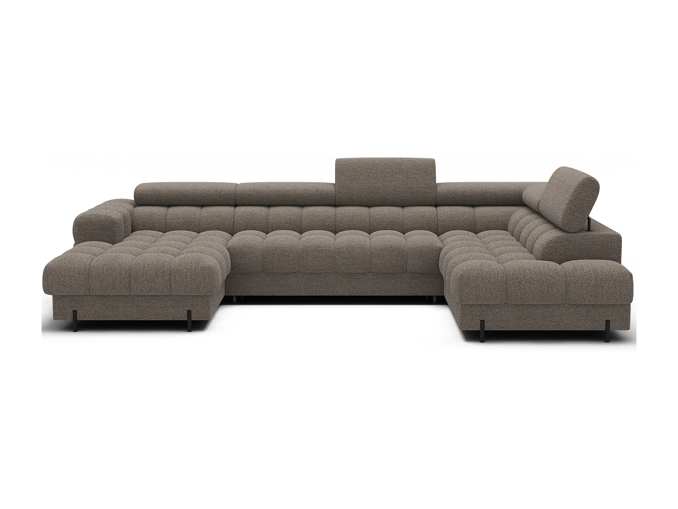 Grand canapé panoramique avec têtières réglables tissu FUZIAN – Fonction lit-Marron-Coffre à gauche