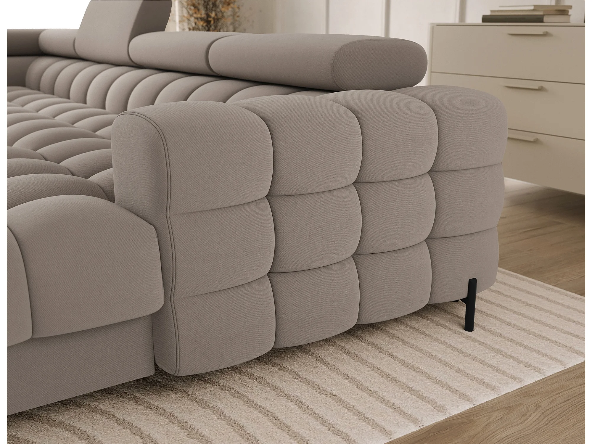Canapé panoramique convertible BENTO en tissu avec coffre de rangement-Gris taupe-angle droit