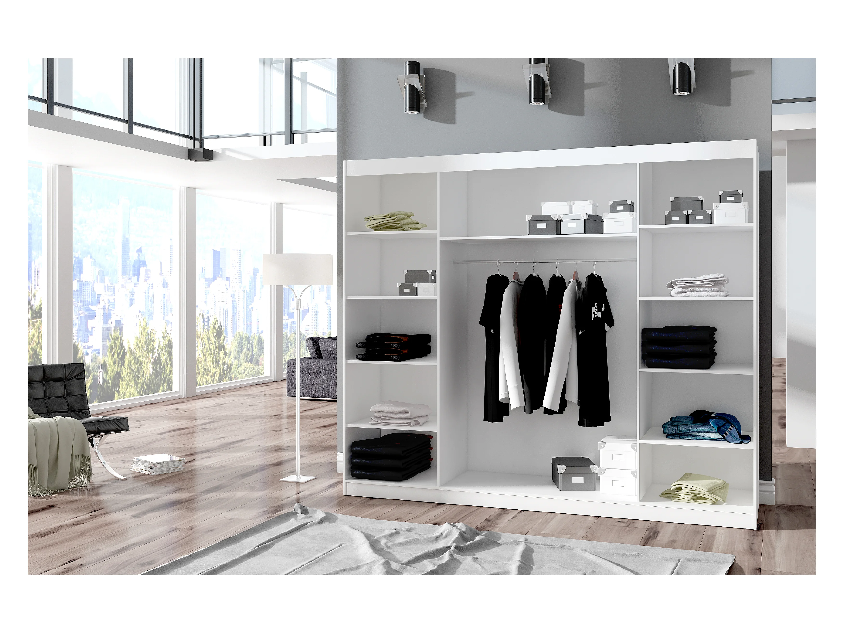Grande armoire de chambre à coucher 3 portes coulissantes bois clair et miroir Kerry 250cm