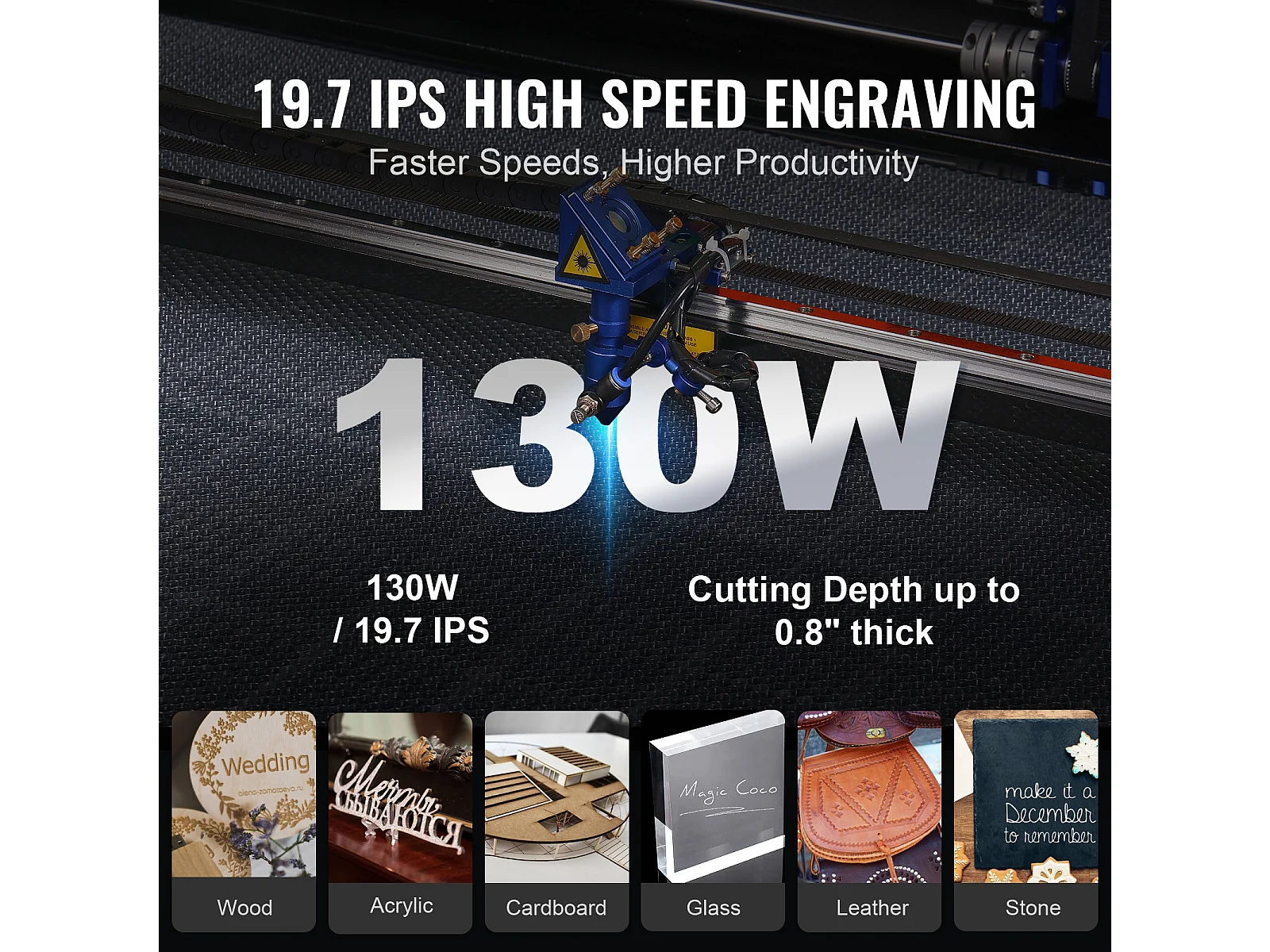 Graveur Laser CO₂ 130 W SucceBuy, Plateau 900x1400 mm, Panneau de Commande Numérique, pour le Bois, l’Acrylique et le Tissu
