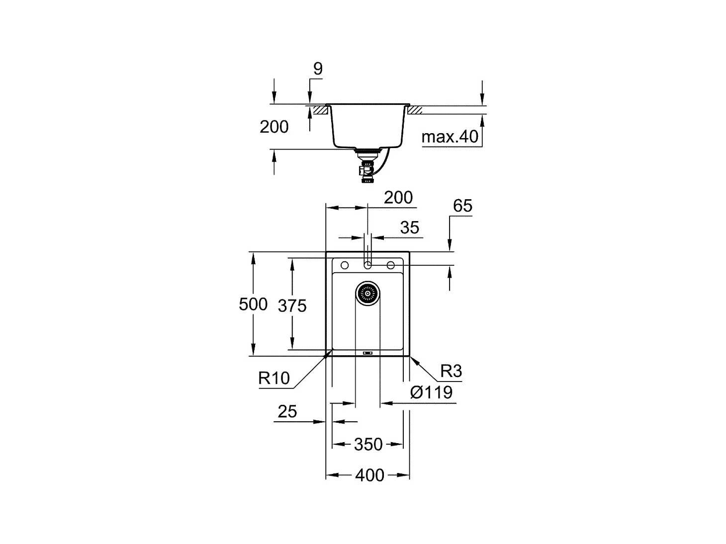 GROHE Evier 1 cuve 457 x 406 mm noir granite quartz composite K700U