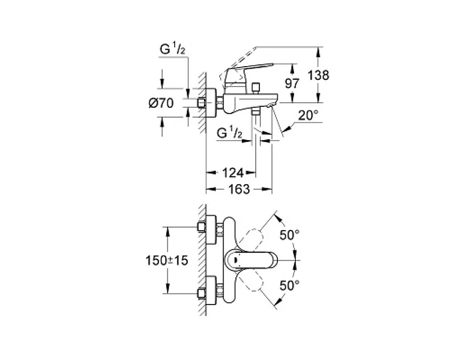 GROHE - Mitigeur de baignoire Start 2021 mural chrome