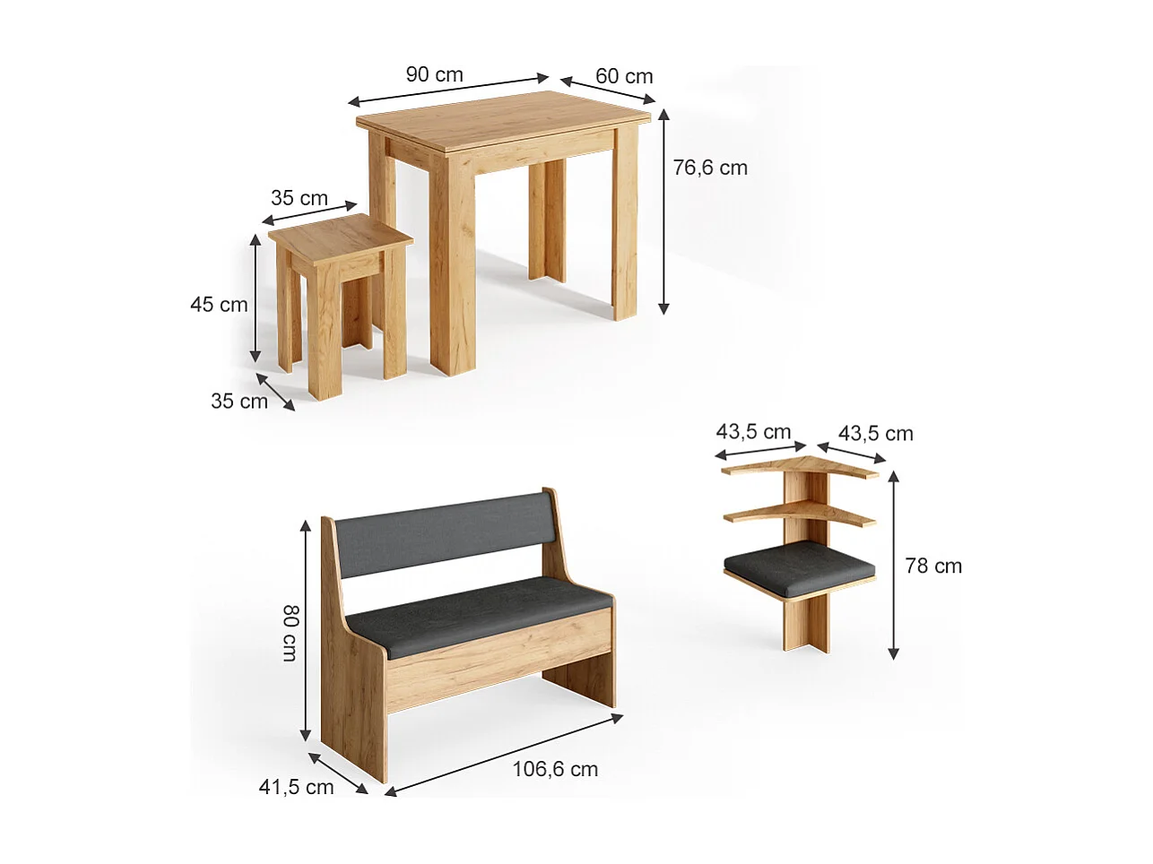 Groupe de banquettes dangle chêne de force doré 150x150x80 roman