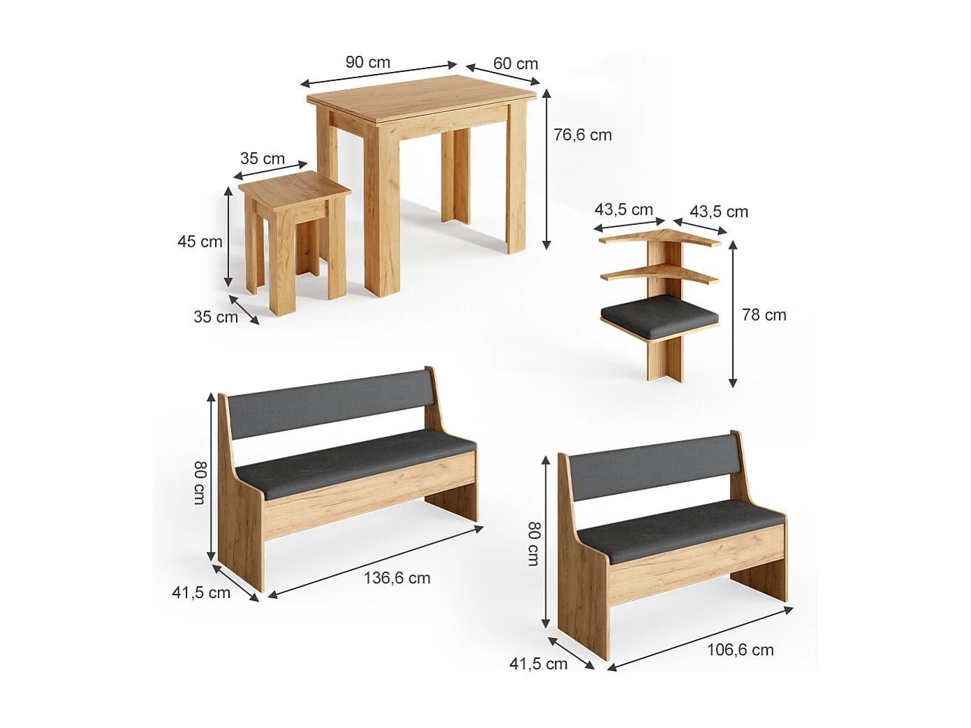 Groupe de banquettes dangle chêne de force doré 180x150x80 roman