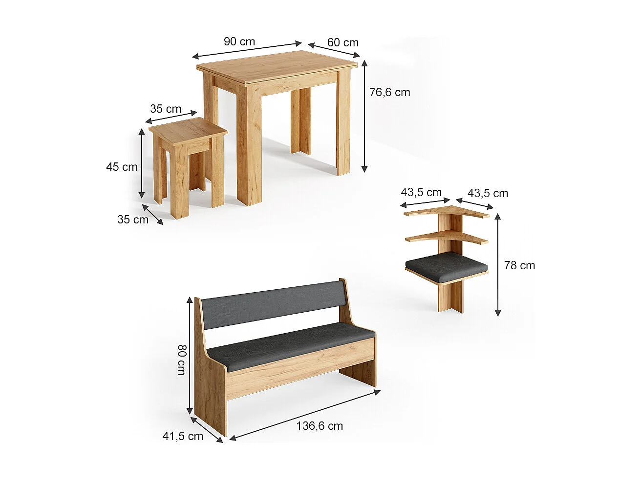 Groupe de banquettes dangle chêne de force doré 180x180x80 roman