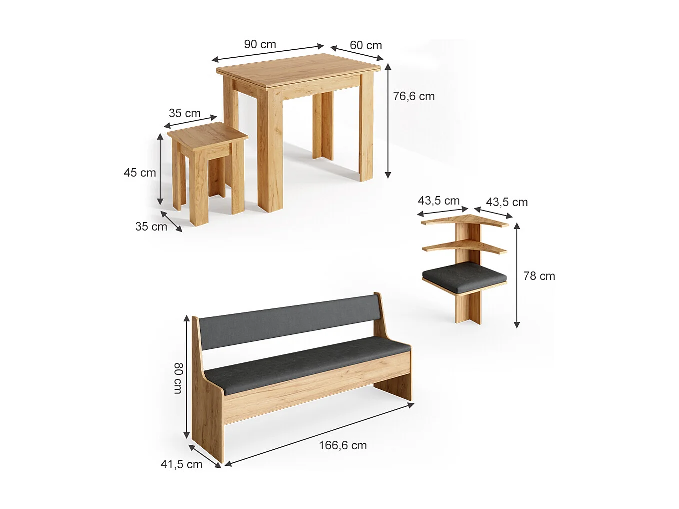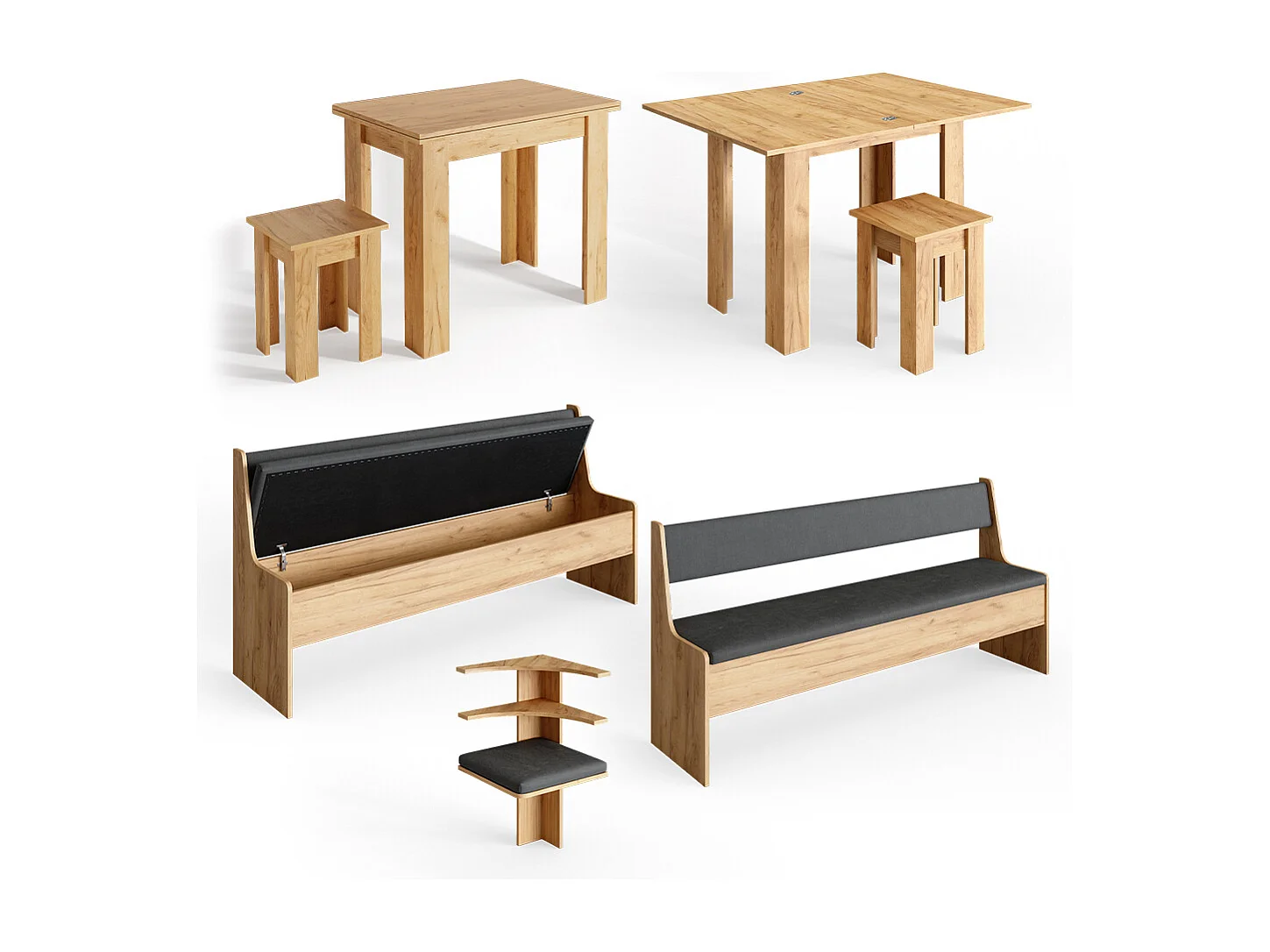 Groupe de banquettes dangle chêne de force doré 210x210x80 roman