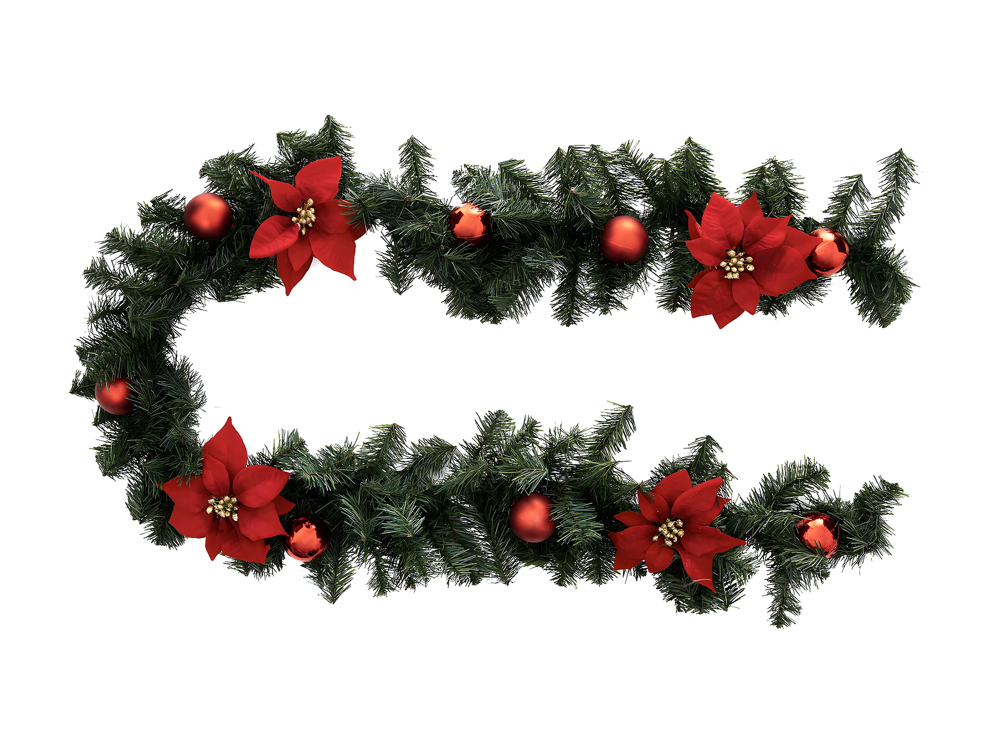 Guirlande de Noël "Poinsettia" 200cm Vert & Rouge