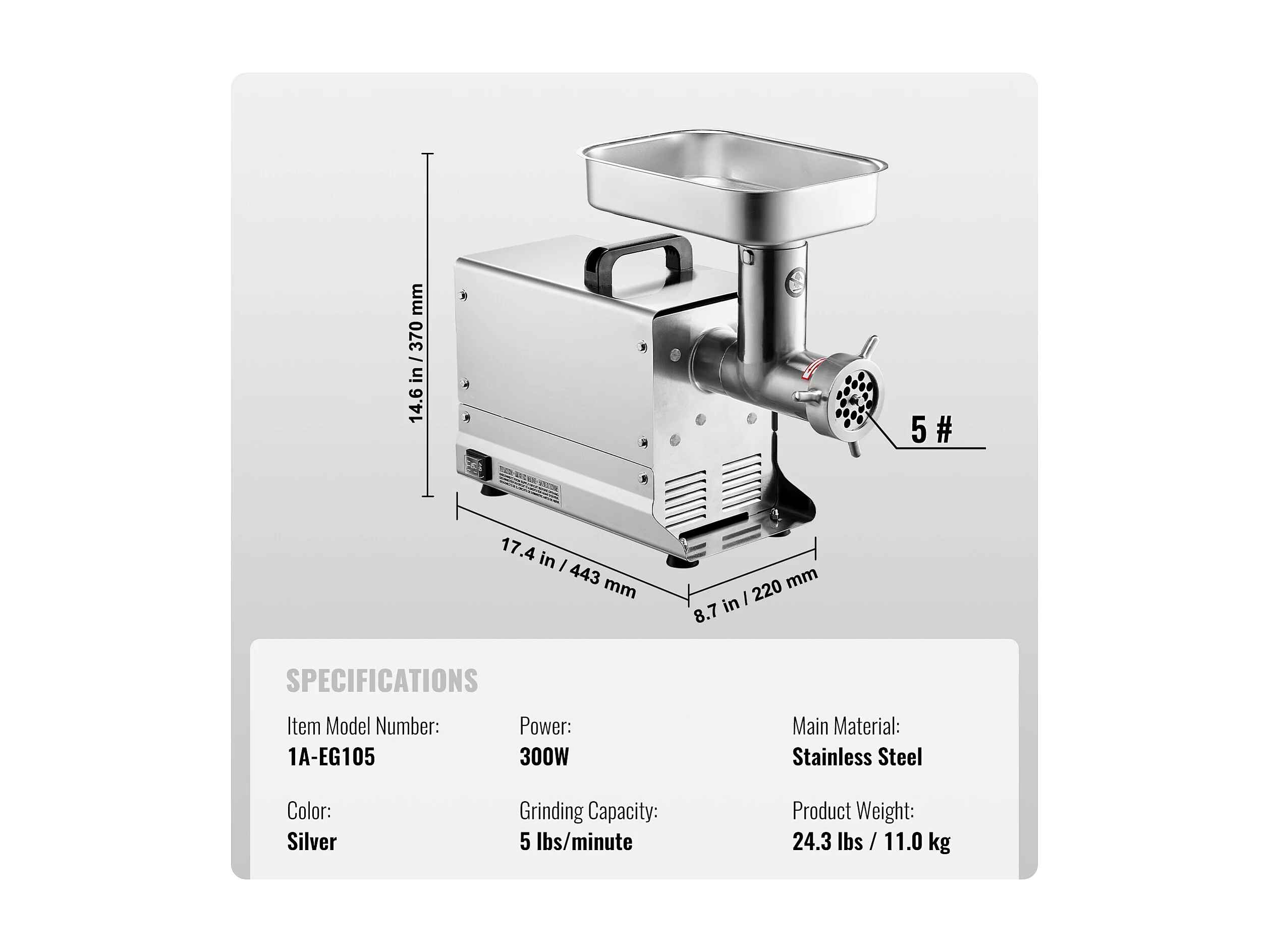 Hachoir à Viande SucceBuy Électrique Commercial 2kg/min Machine à Saucisses Cuisine, Compact et Efficace pour Petites Entreprises et Food Trucks
