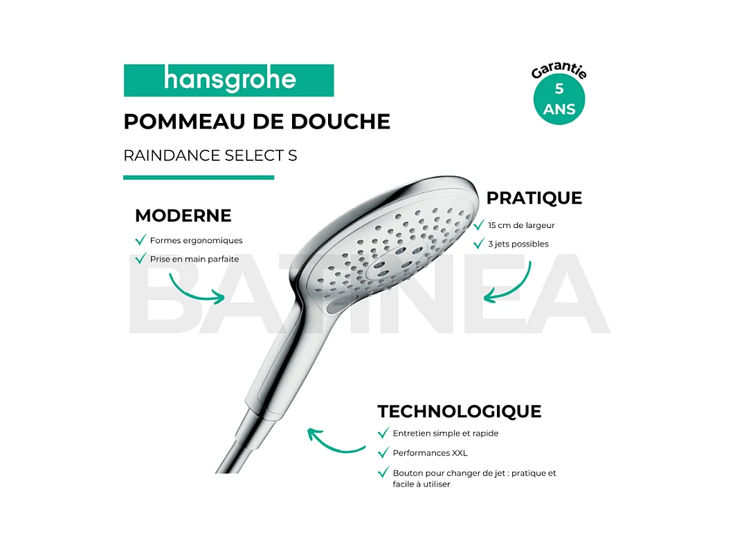 HANSGROHE Douchette 3 jets Raindance Select S 150