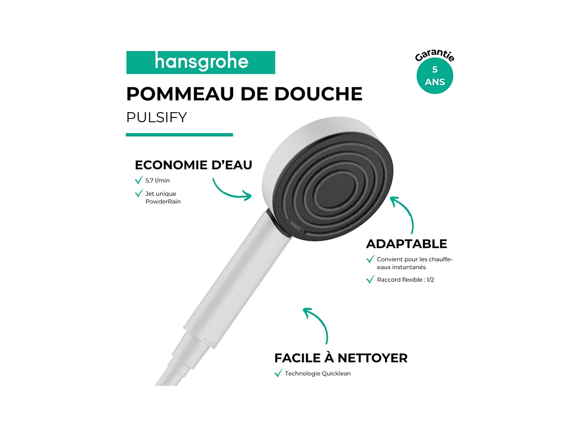 HANSGROHE Douchette à main 105 1jet EcoSmart 9l/min blanc mat Pulsify