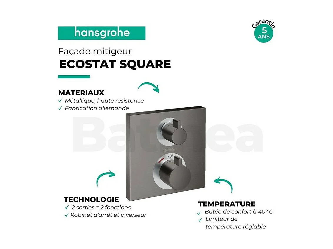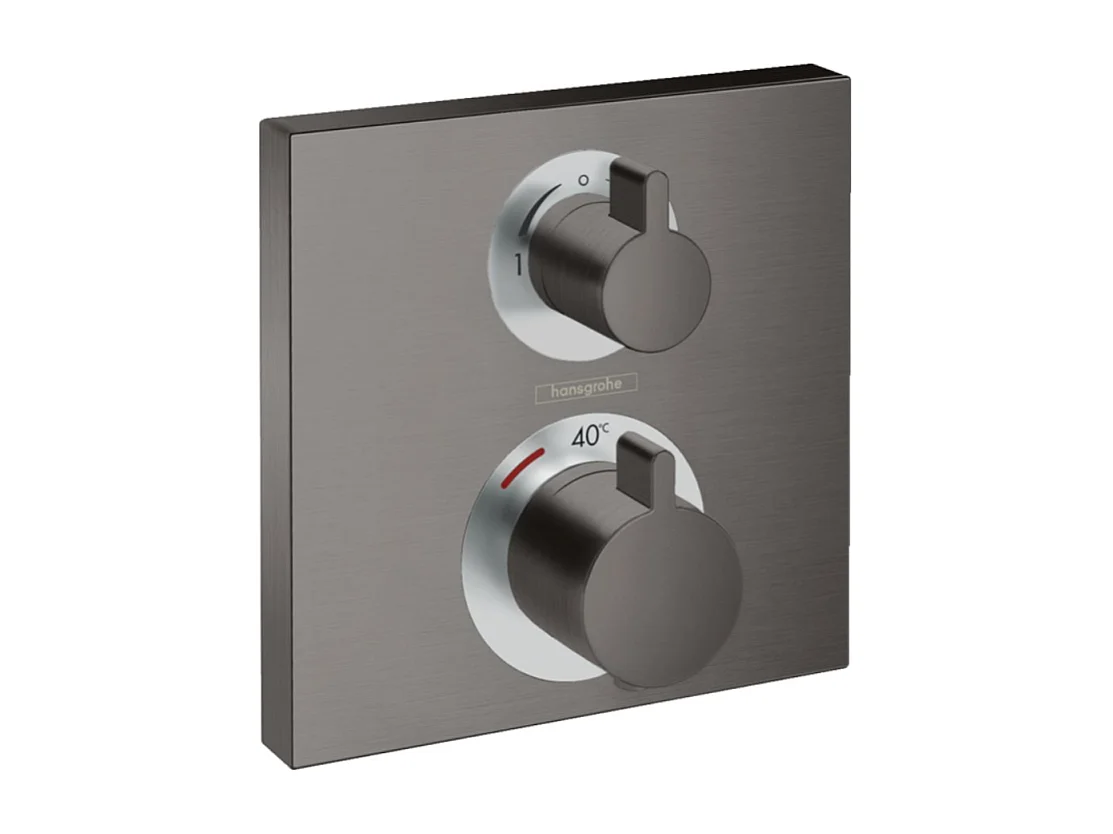 HANSGROHE Façade pour mitigeur thermostatique encastré Ecostat Square avec robinet d'arrêt et inverseur noir chrome brossé
