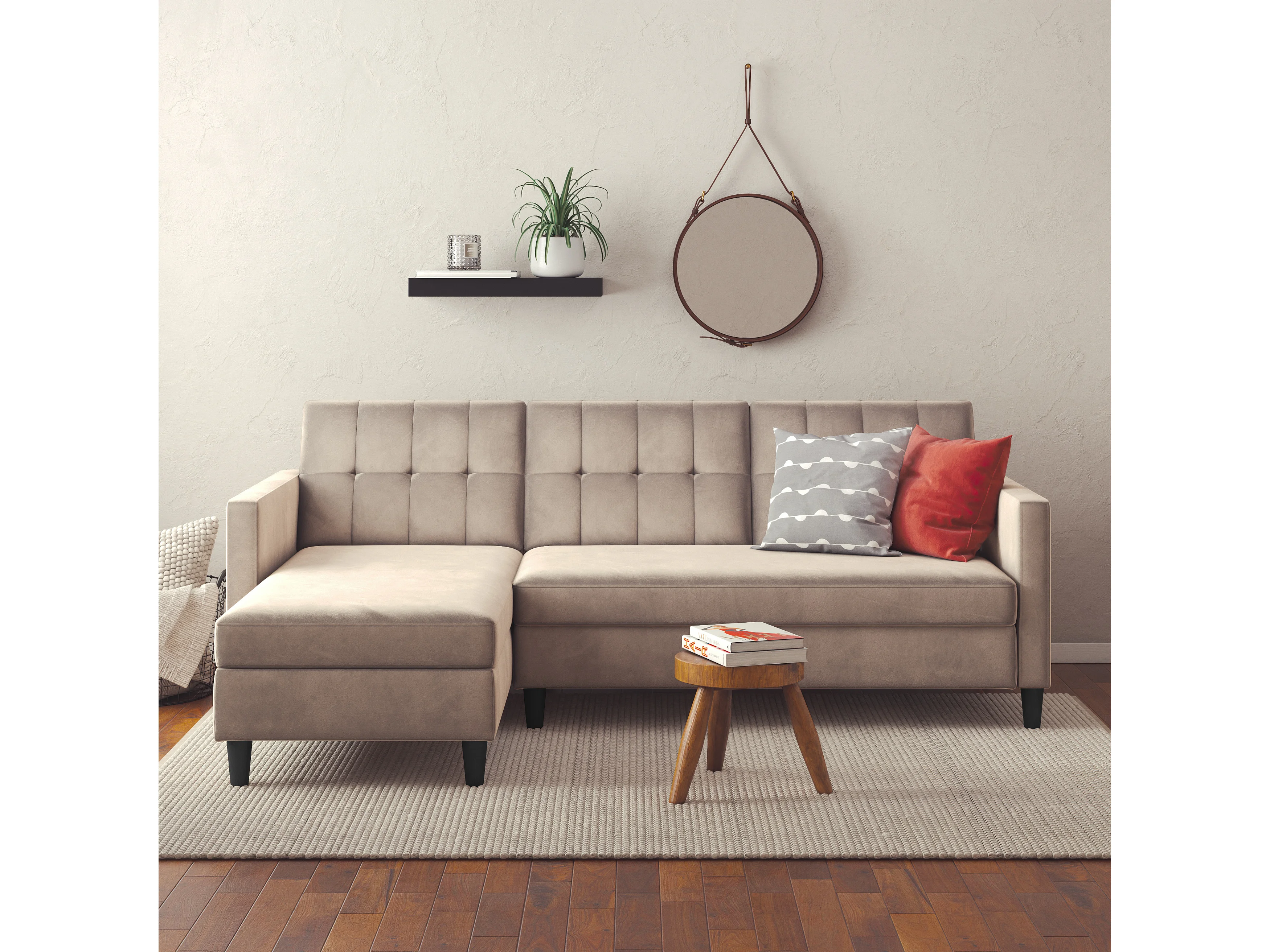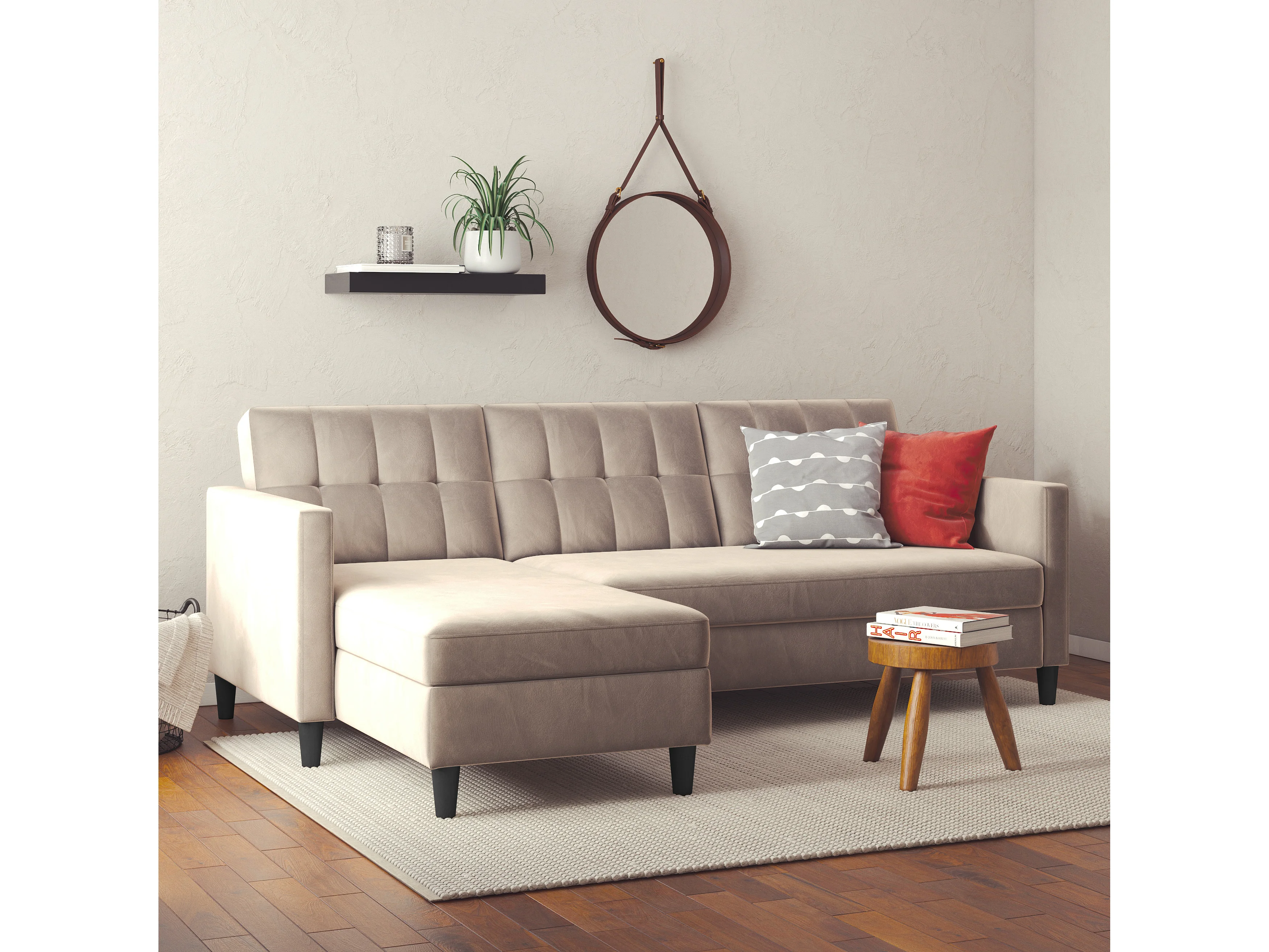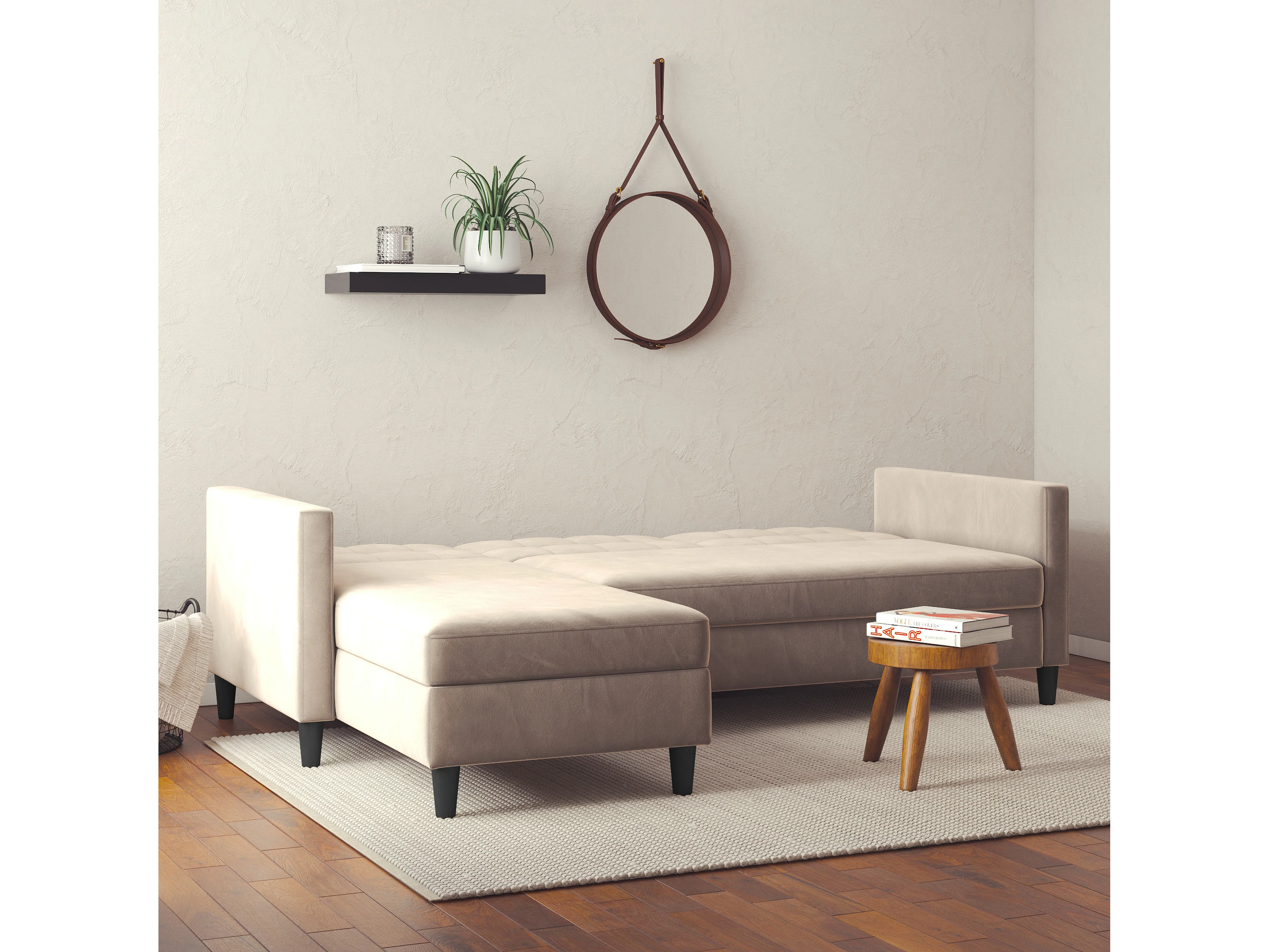 Hartford | Canapé convertible 3 places avec méridienne en velours taupe