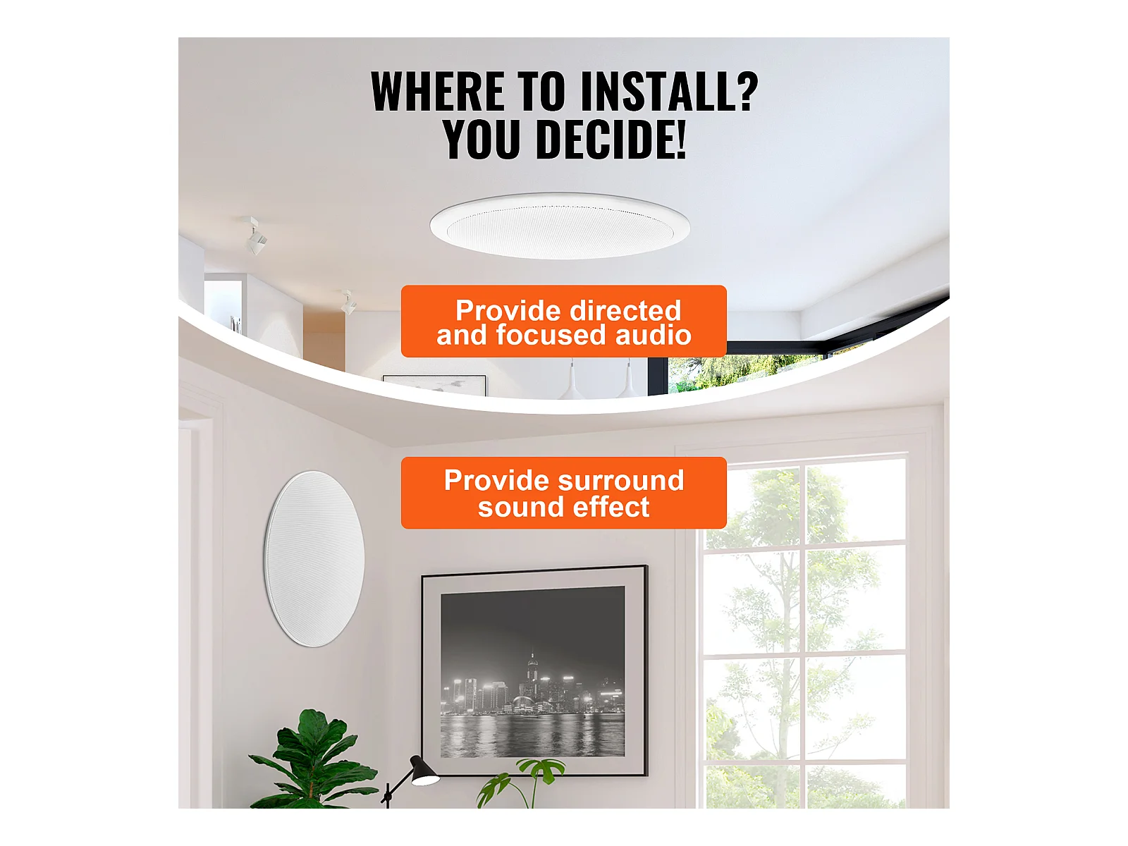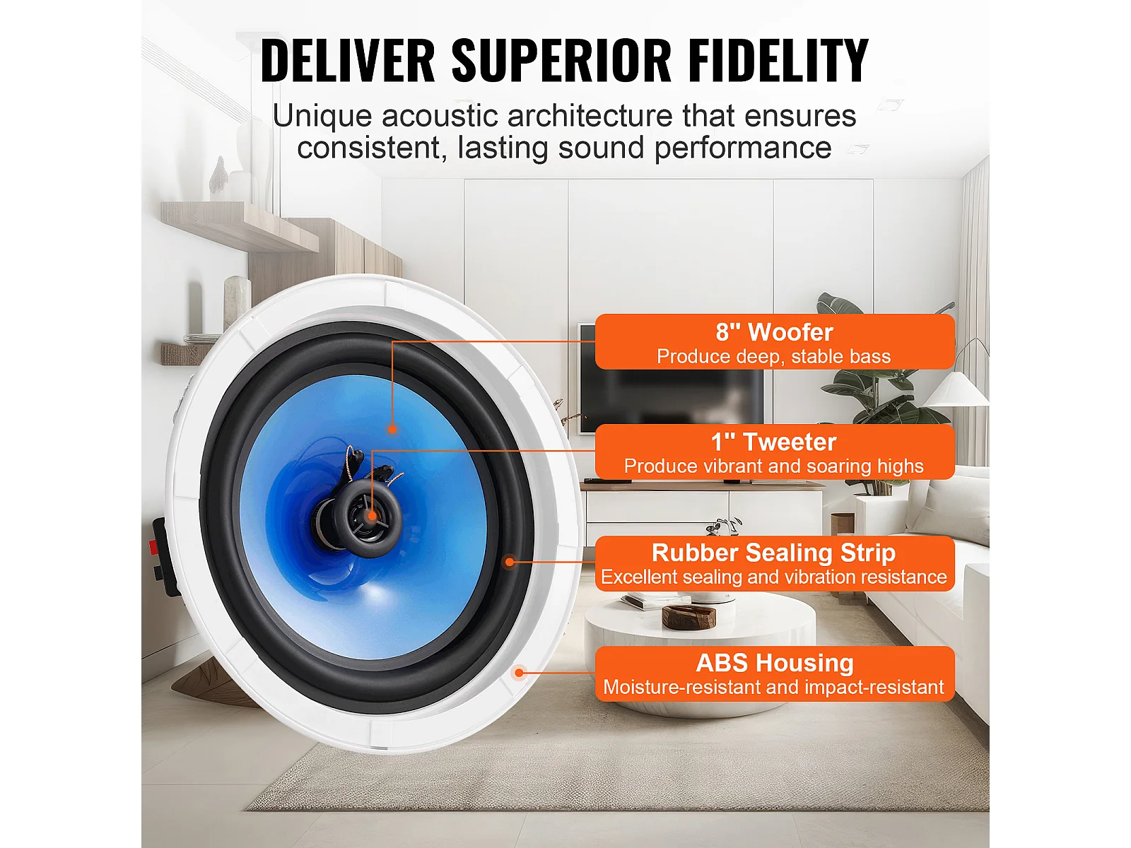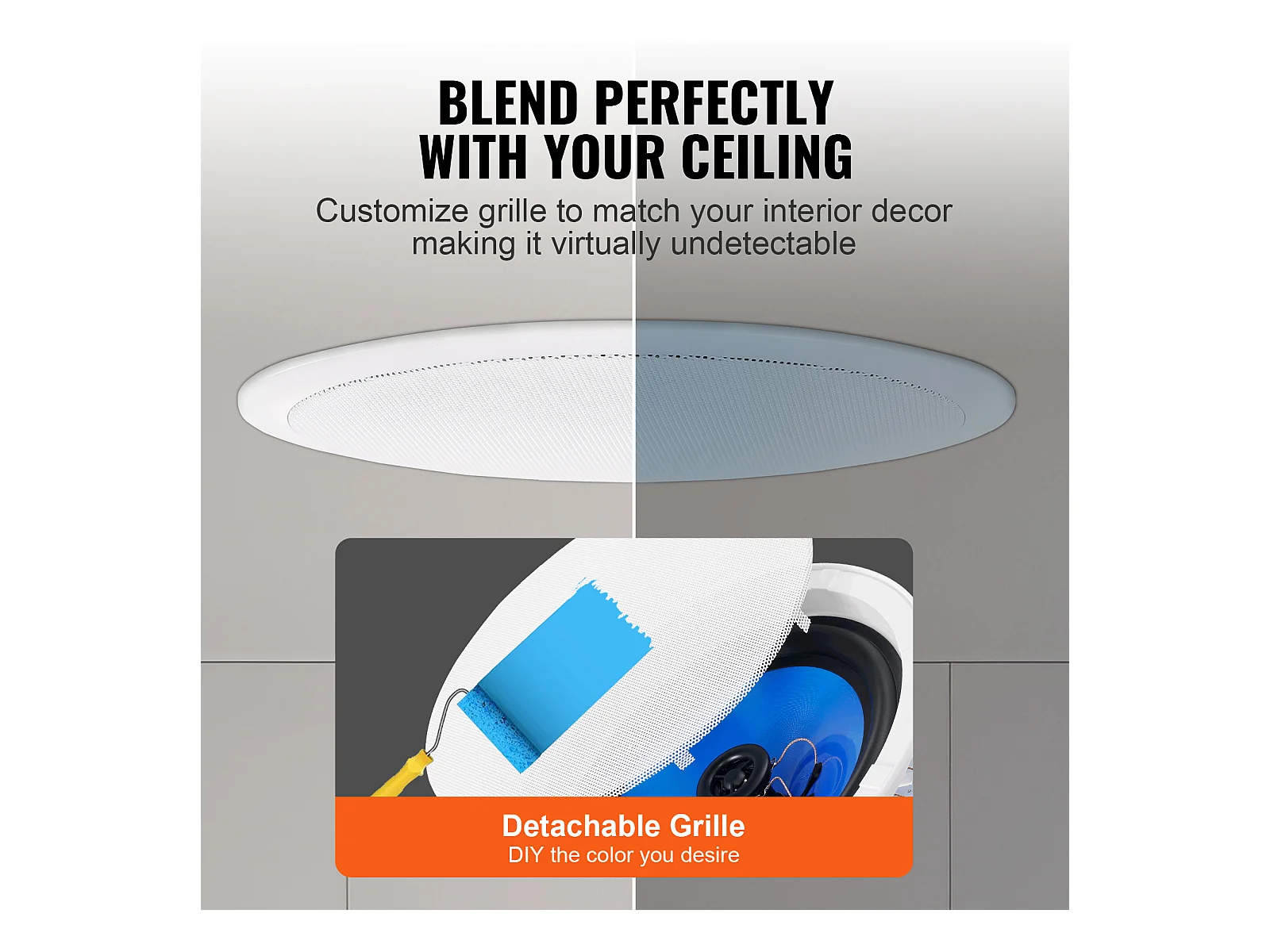 Haut-Parleurs de Plafond SucceBuy 20cm 200 Watts, Montage Encastré, Système de Haut-Parleurs Encastrés au Plafond et au Mur