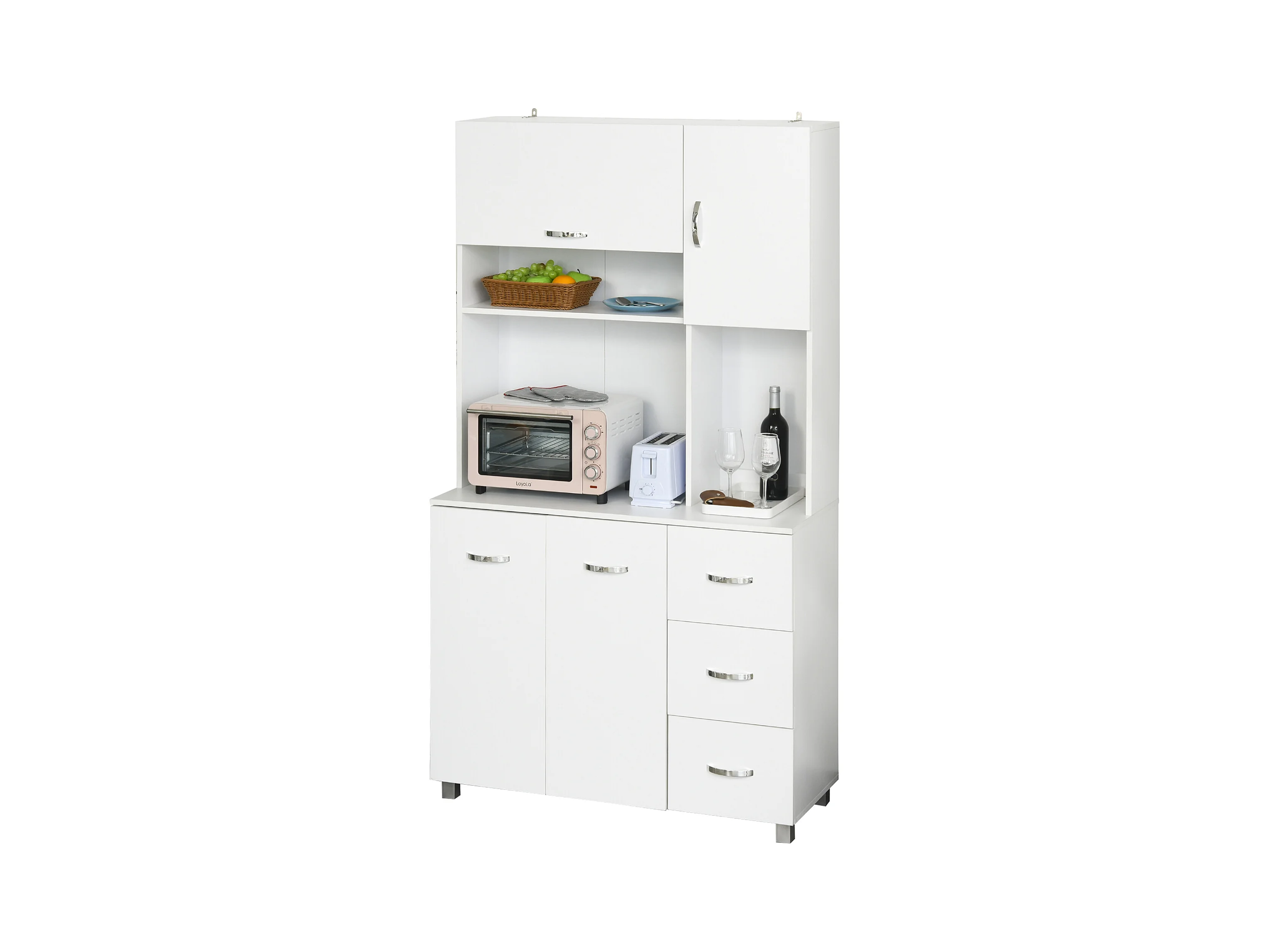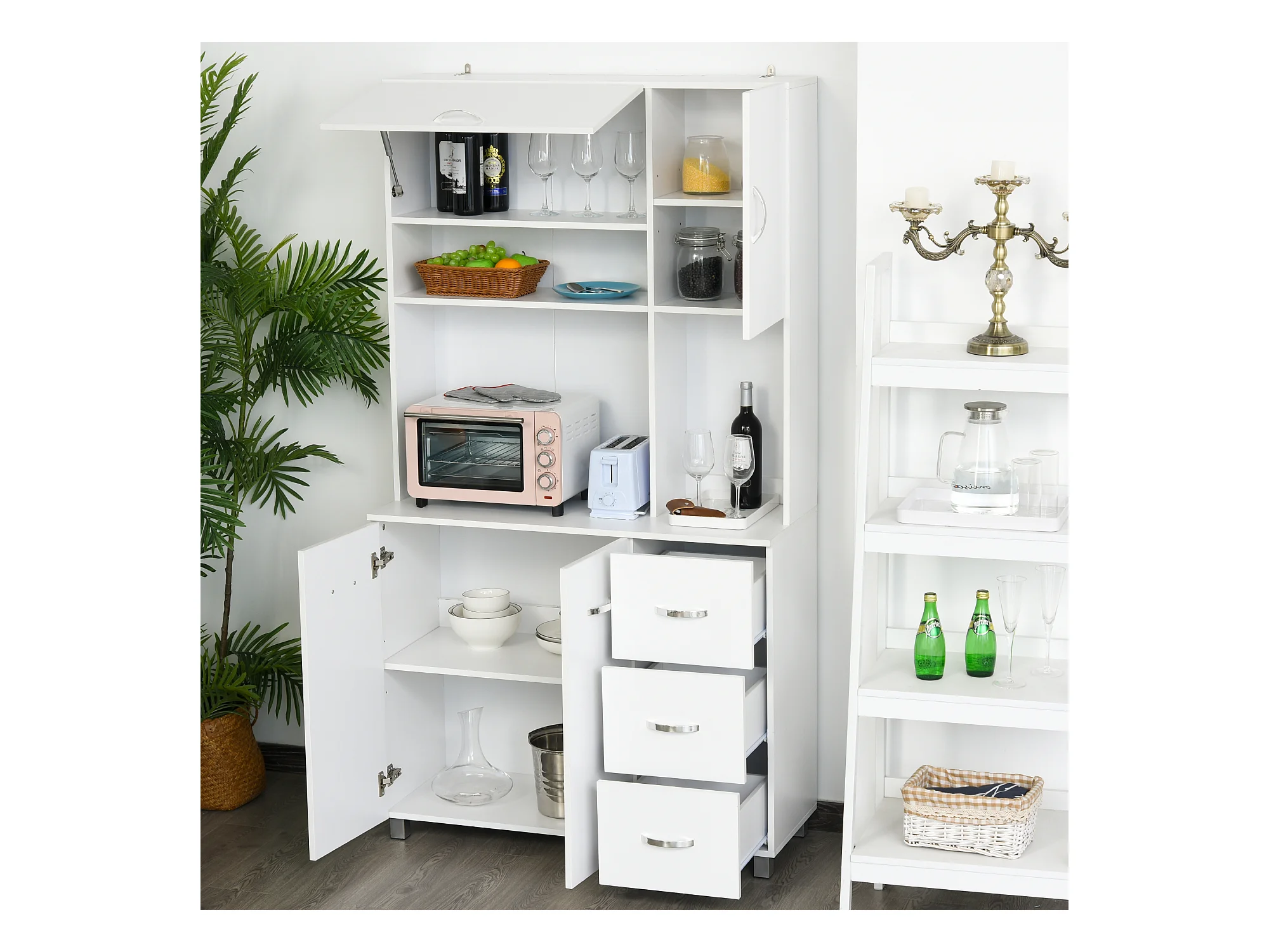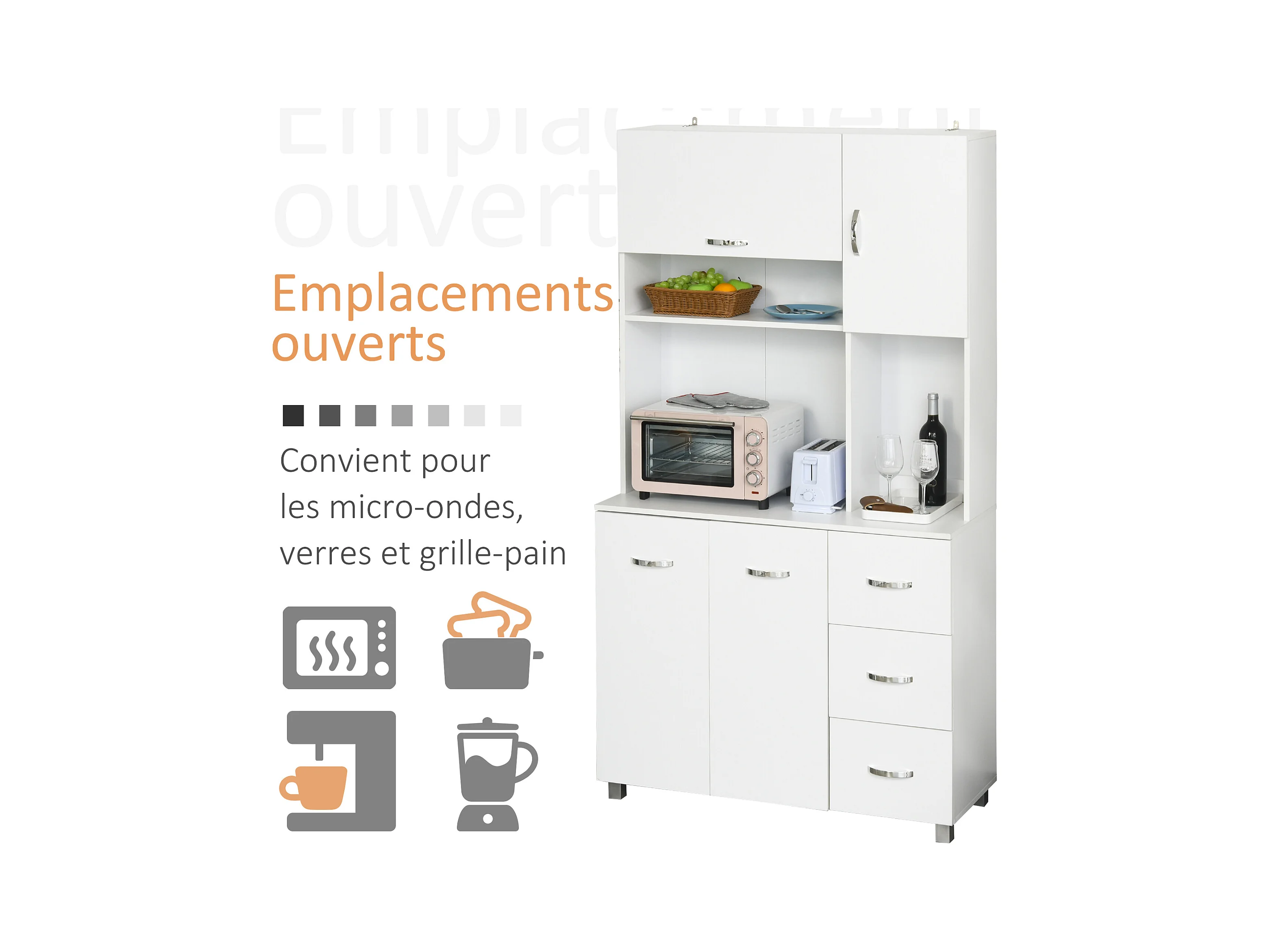 HOMCOM Armoire de cuisine multi-rangements 4 portes 3 tiroirs étagère + grand plateau 100L x 39l x 183H cm MDF blanc