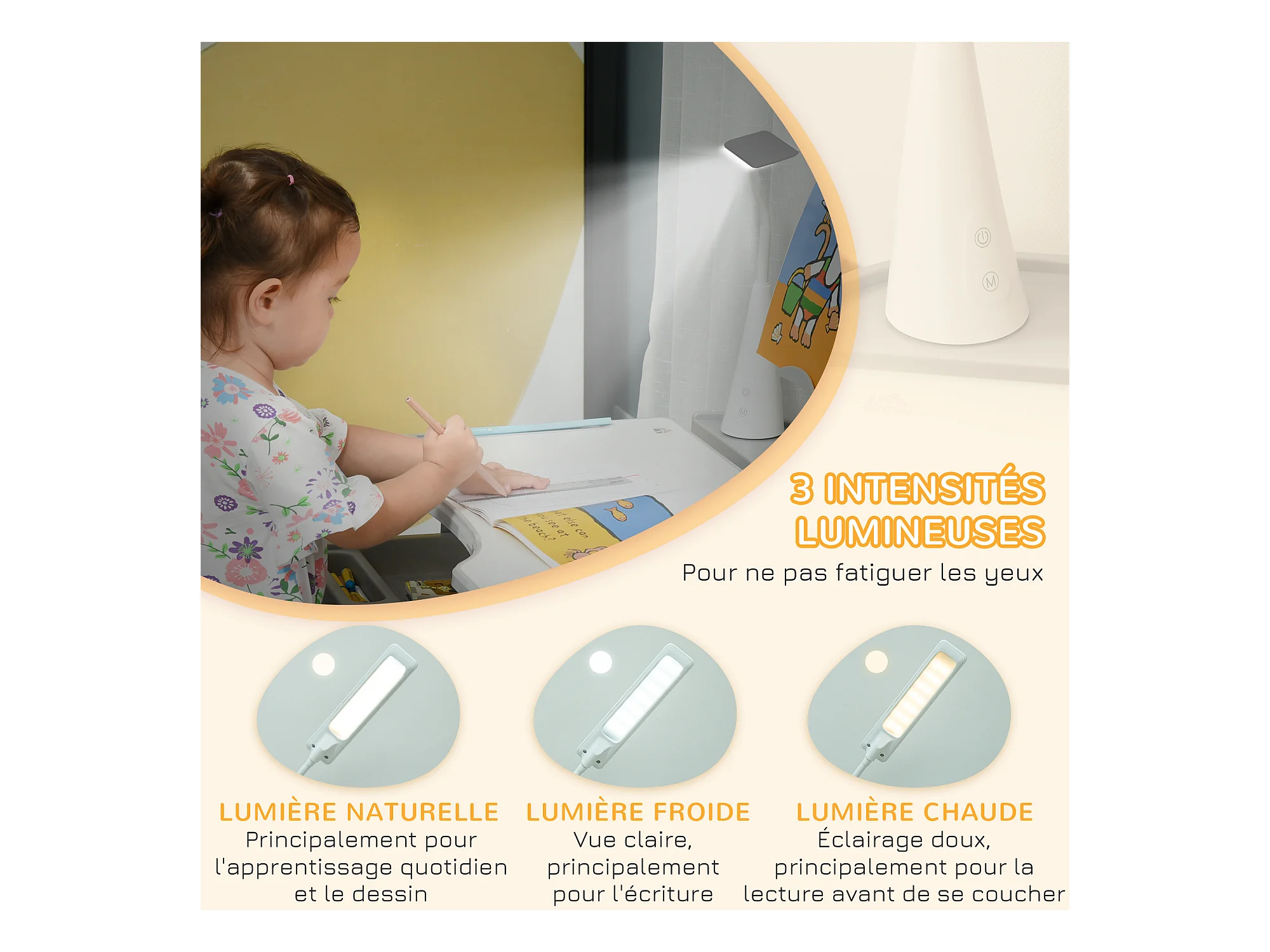 Bureau enfant avec chaise - ensemble bureau et chaise réglable - lampe, support de lecture, tablette coulissante multi-rangement - gris blanc