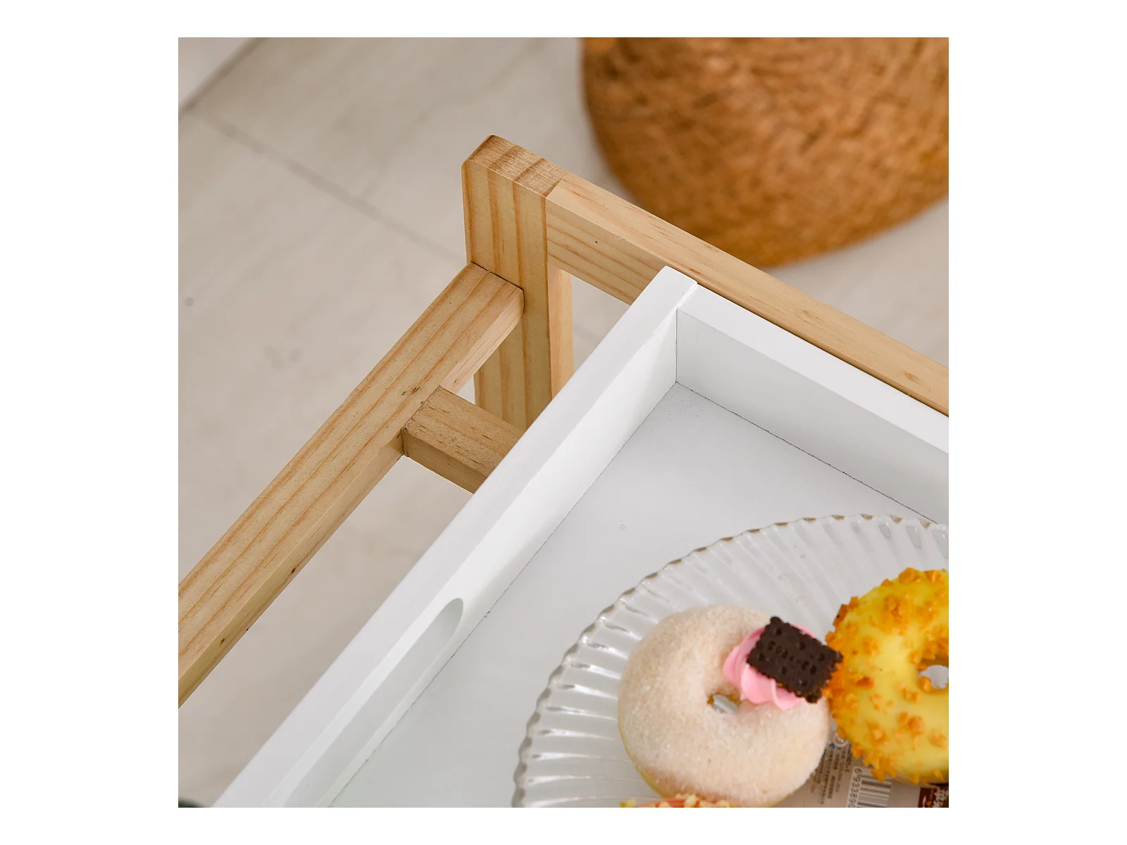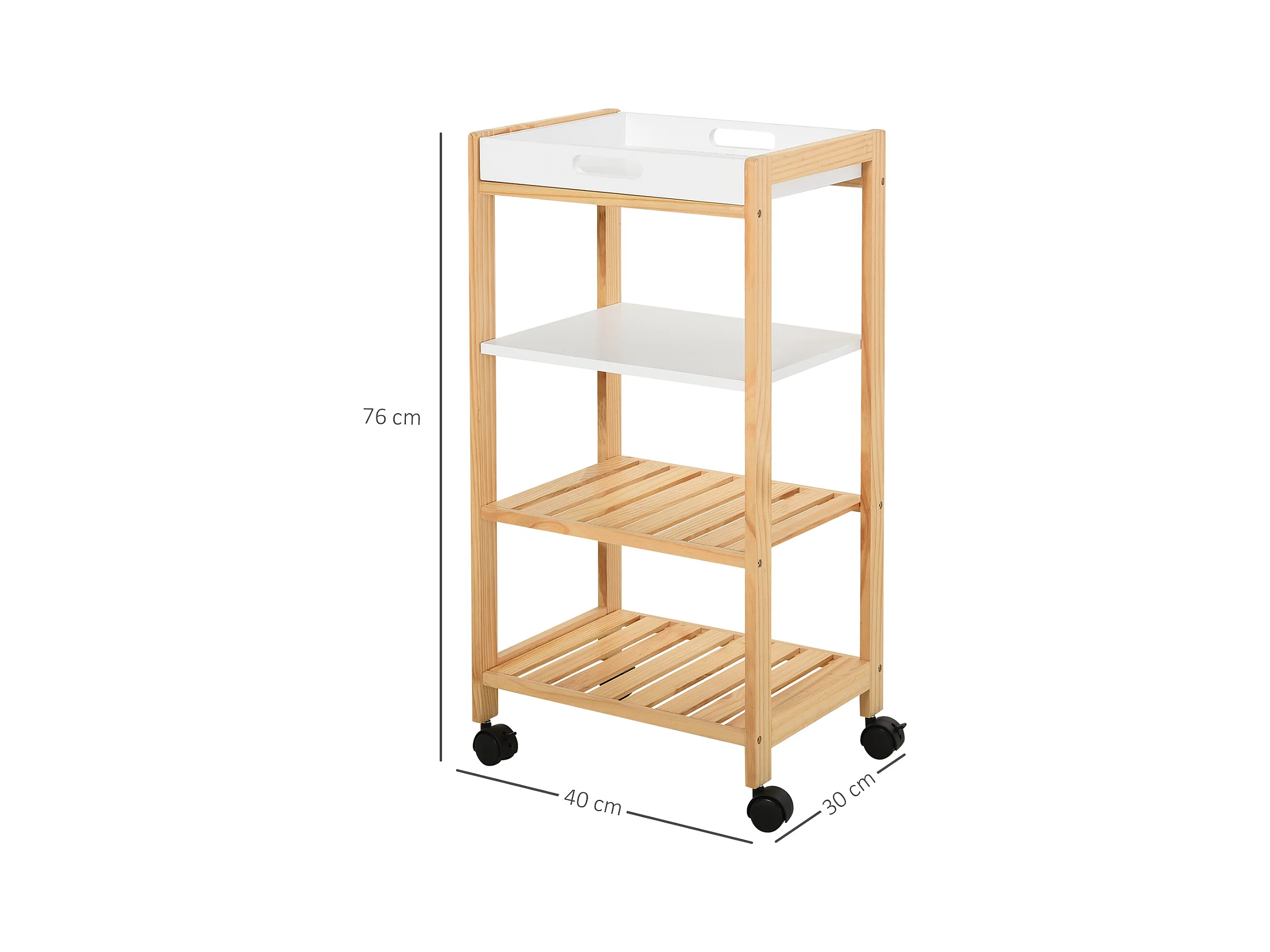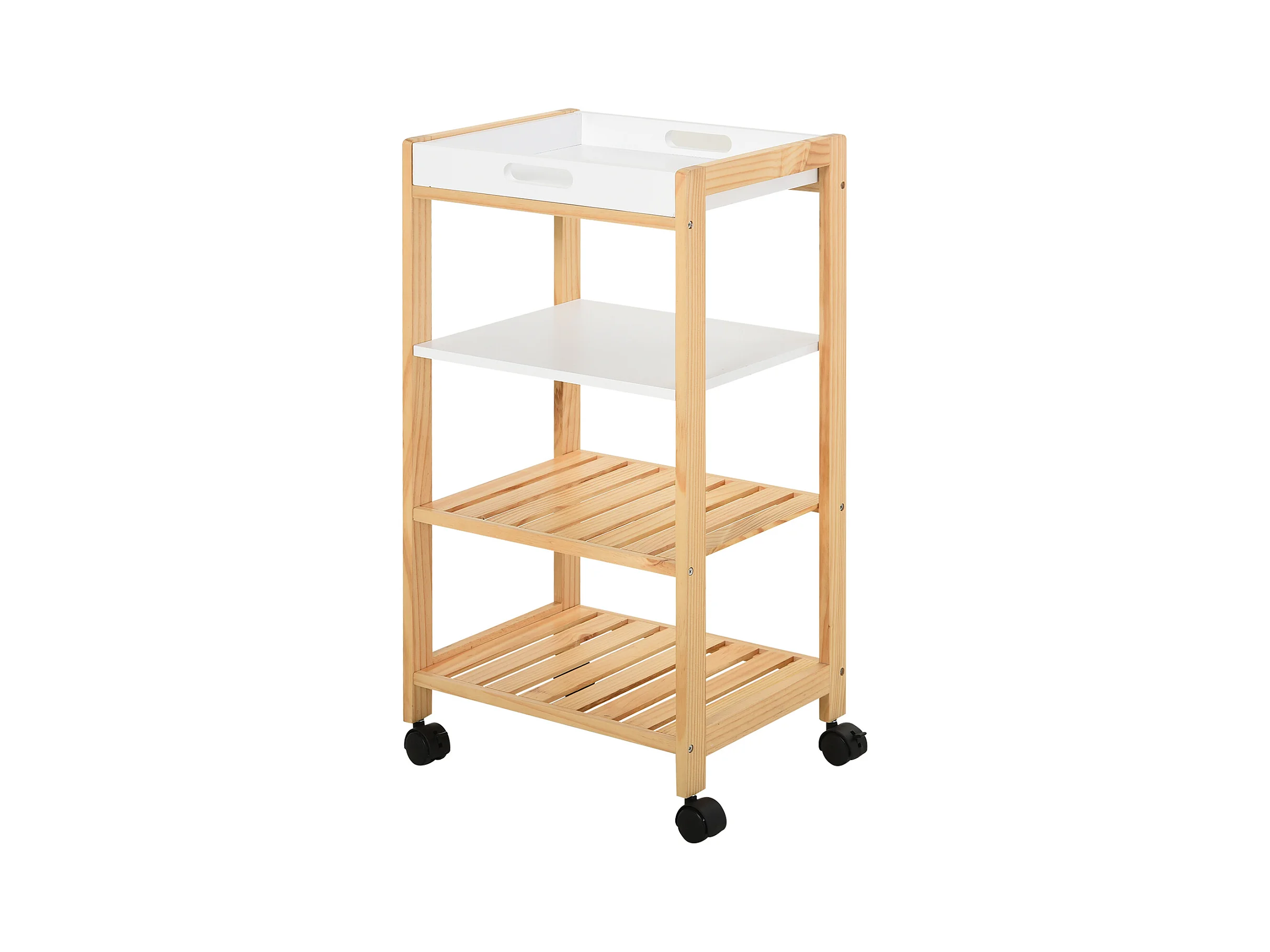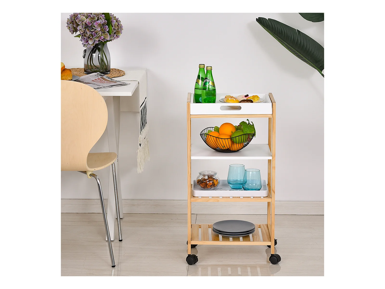 Chariot de service desserte de cuisine à roulettes 2 étagères + plateau amovible bois de pin MDF blanc