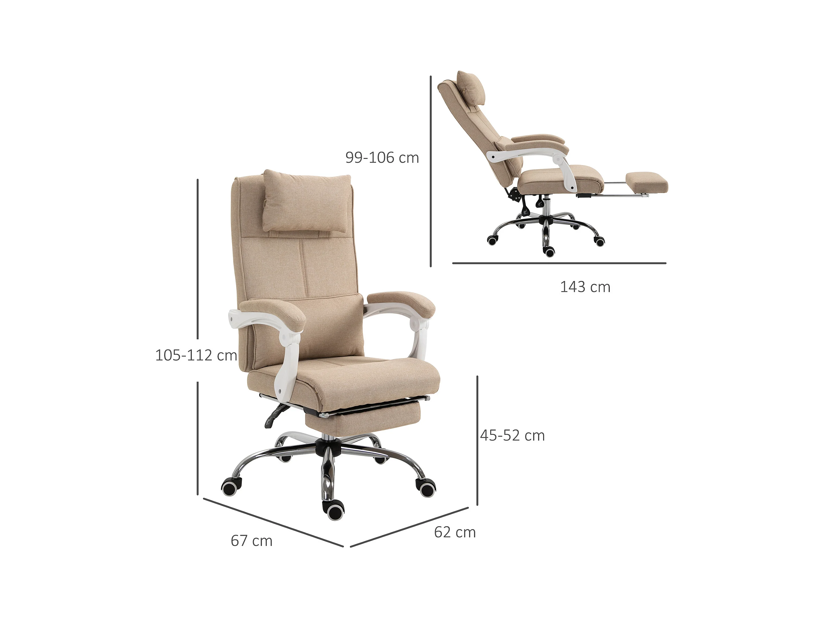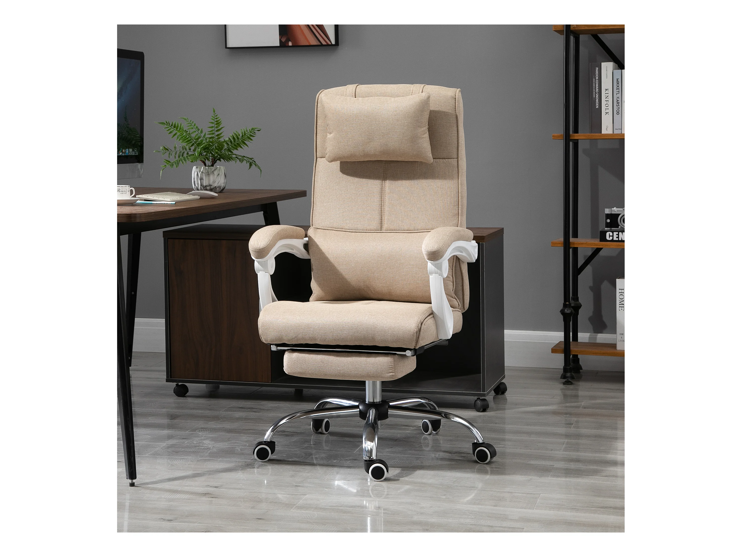 Fauteuil de bureau manager grand confort repose-pied tétière intégrés dossier inclinable lin beige
