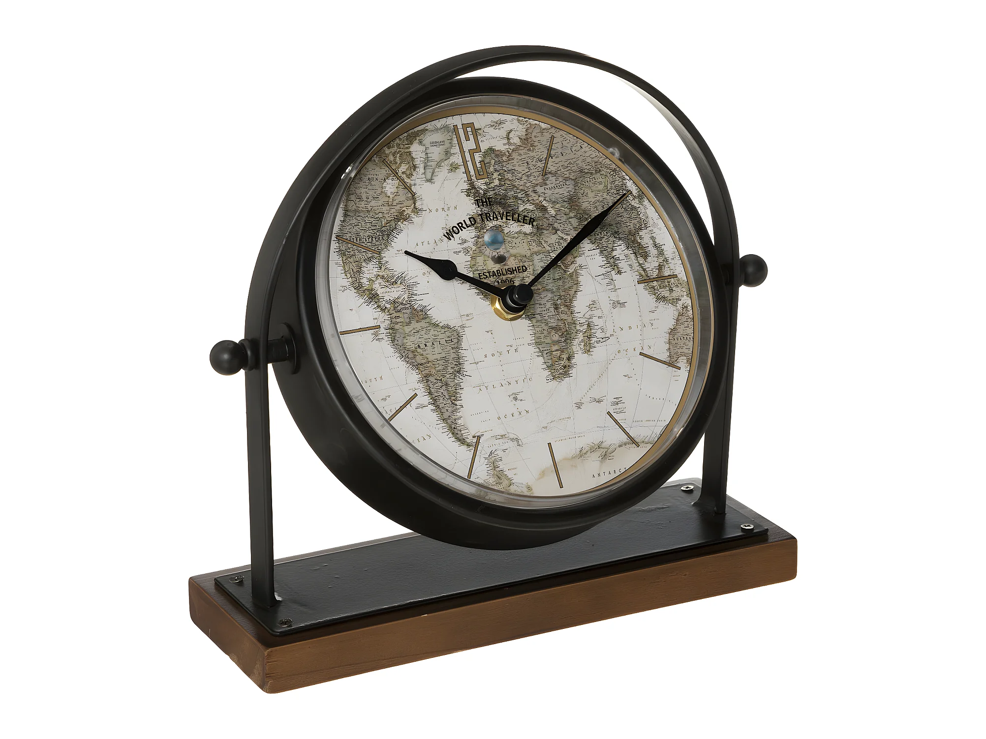 Horloge à poser Globe en métal Noir déco rétro H 20 cm