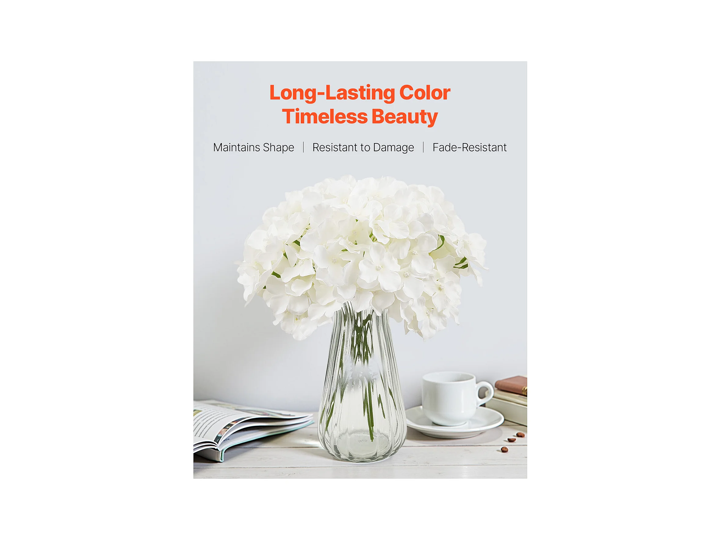 Hortensia Artificielle SucceBuy Fleurs Artificielles 250 mm, Bouquets de Fausses Fleurs Aspect Réaliste avec Tête 152,4 mm, Lot de 205, Blanc