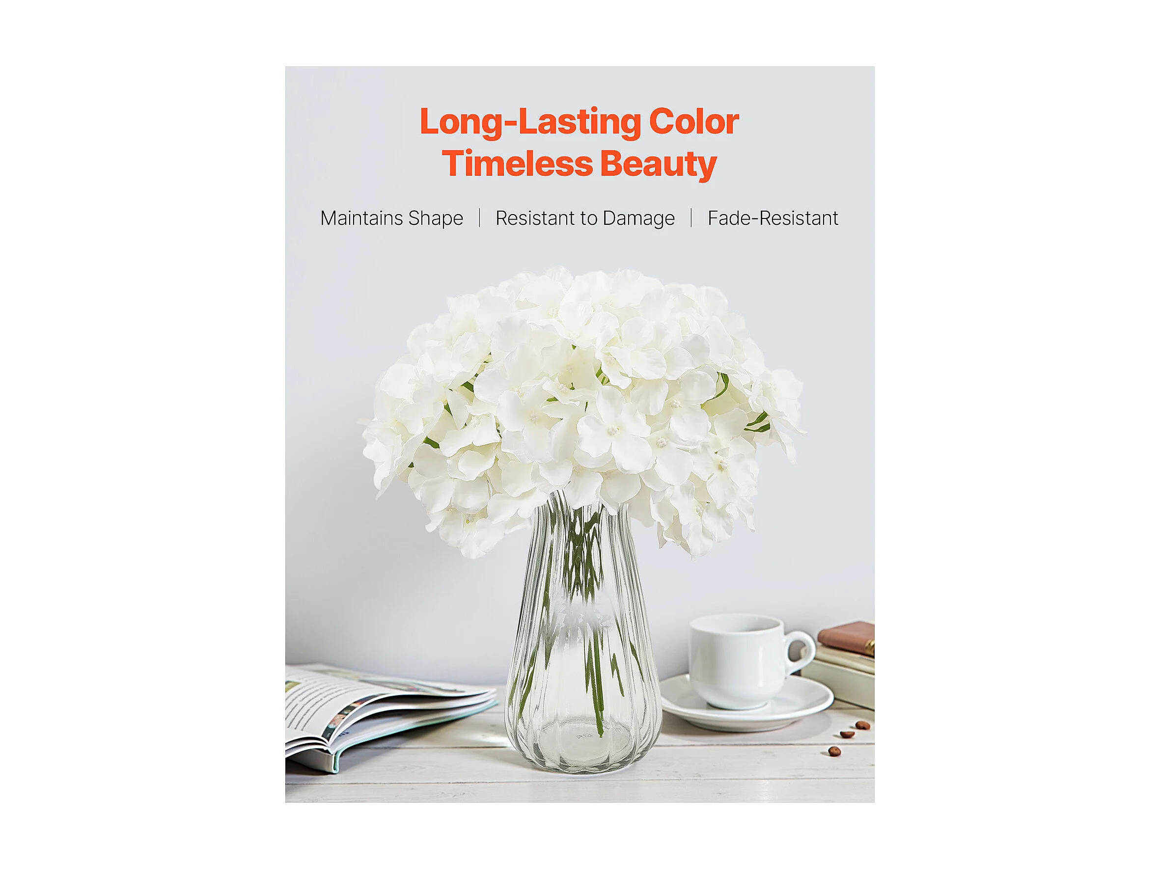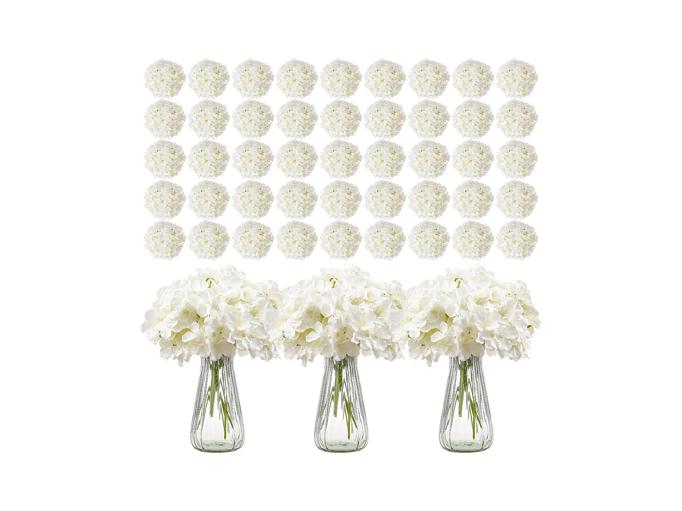 Hortensia Artificielle SucceBuy Fleurs Artificielles 250 mm, Bouquets de Fausses Fleurs Aspect Réaliste avec Tête 152,4 mm, Lot de 105, Blanc
