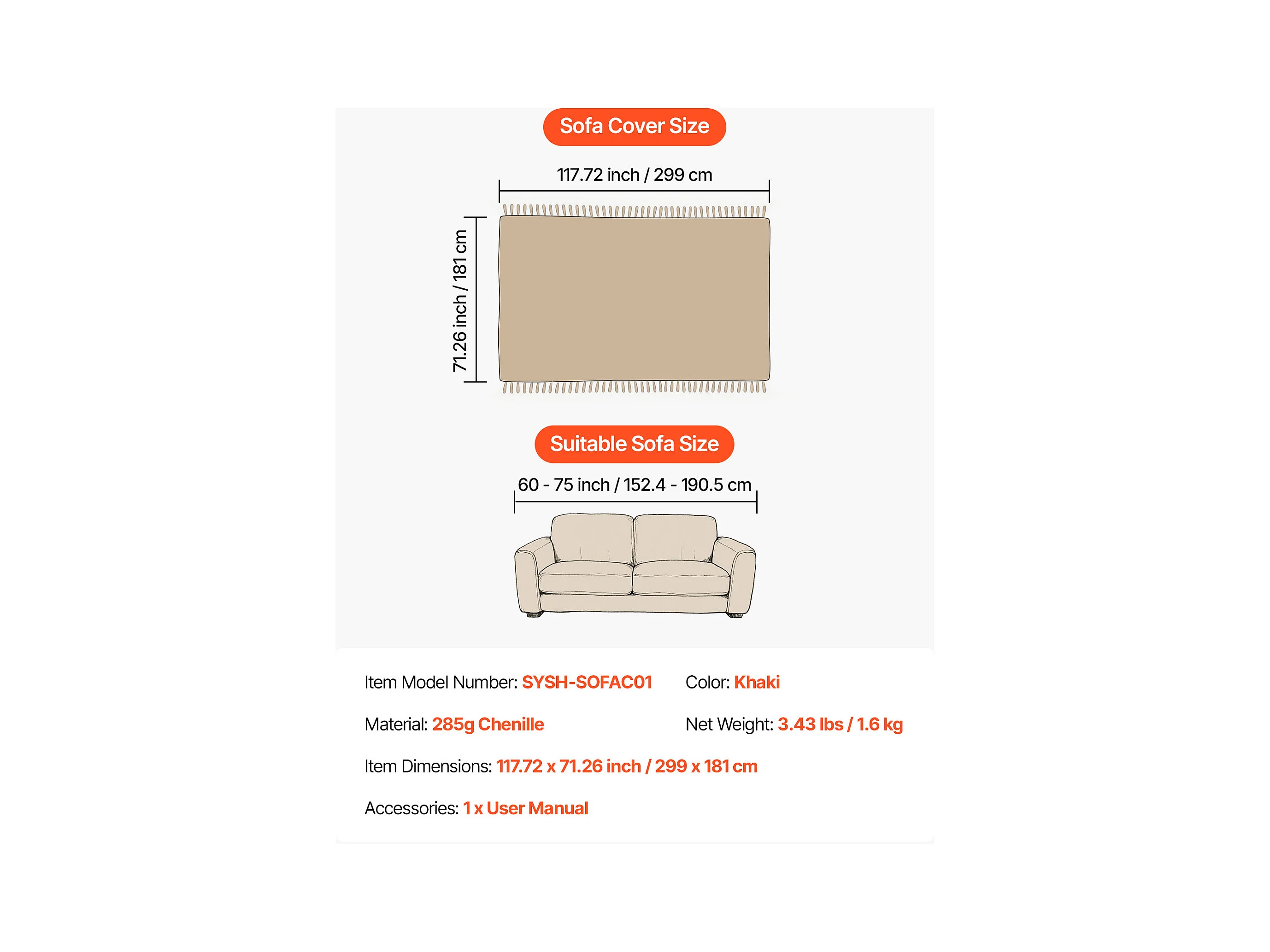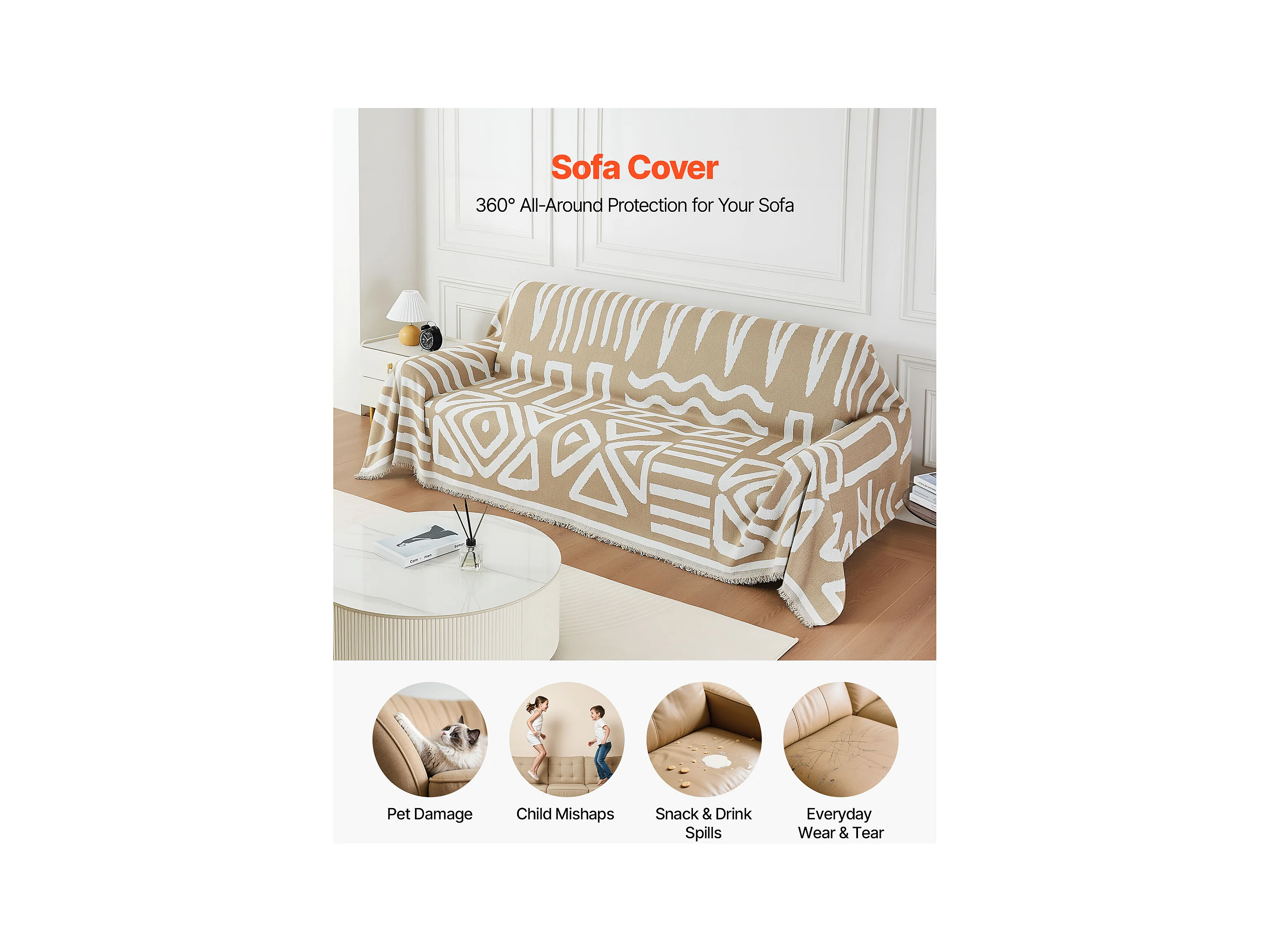 Housse de Canapé SucceBuy de 299 x 181 cm, Couvre Canapé de Style Bohème, Revêtement Antidérapant en Chenille, Lavable et Résistant aux Rayures