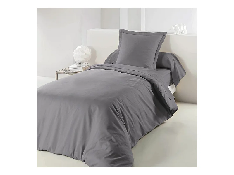 Housse de couette 1 Personne en Coton Gris souris 140 x 200 cm
