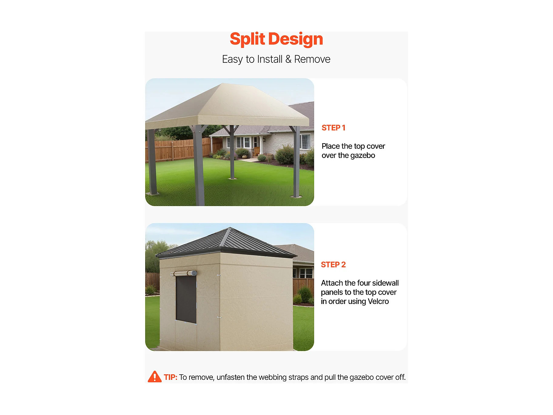 Housse de Gazebo Hiver SucceBuy, 3,05 x 3,65 m, Couverture de Gazebo à Toit Rigide Double, avec Parois Latérales, Fenêtres Maille, Matériau PE Haute Densité