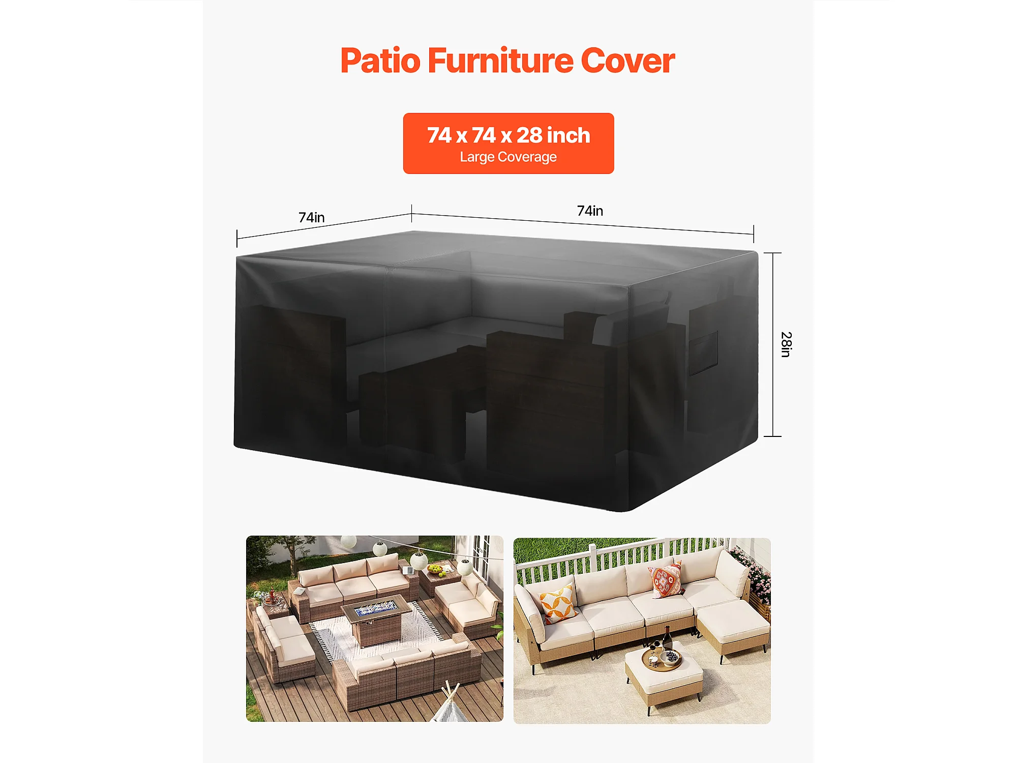 Housse de Meubles de Jardin SucceBuy, 279x213x71 cm, Bâche de Protection pour Mobiliers d’Extérieur en 420D Imperméable et Résistante, Toutes Saisons, Noir