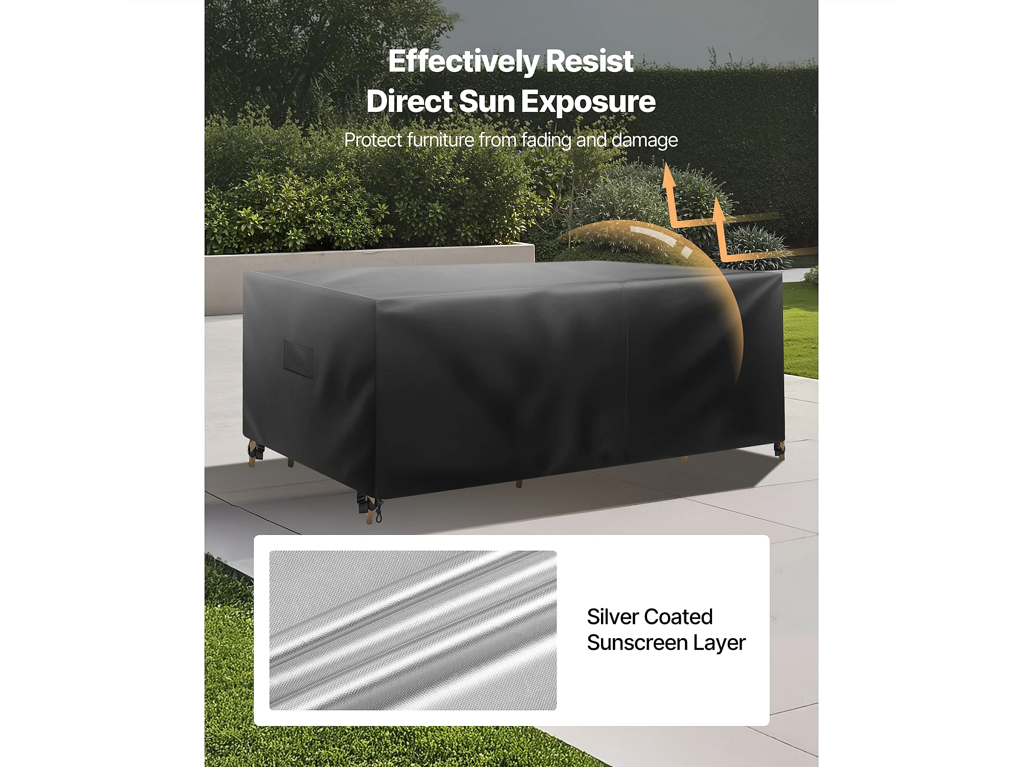Housse de Meubles de Jardin SucceBuy, 249x198x81 cm, Bâche de Protection pour Mobiliers d’Extérieur en 420D Imperméable et Résistante, Toutes Saisons, Noir