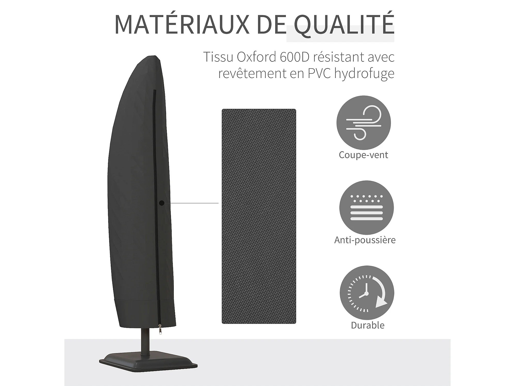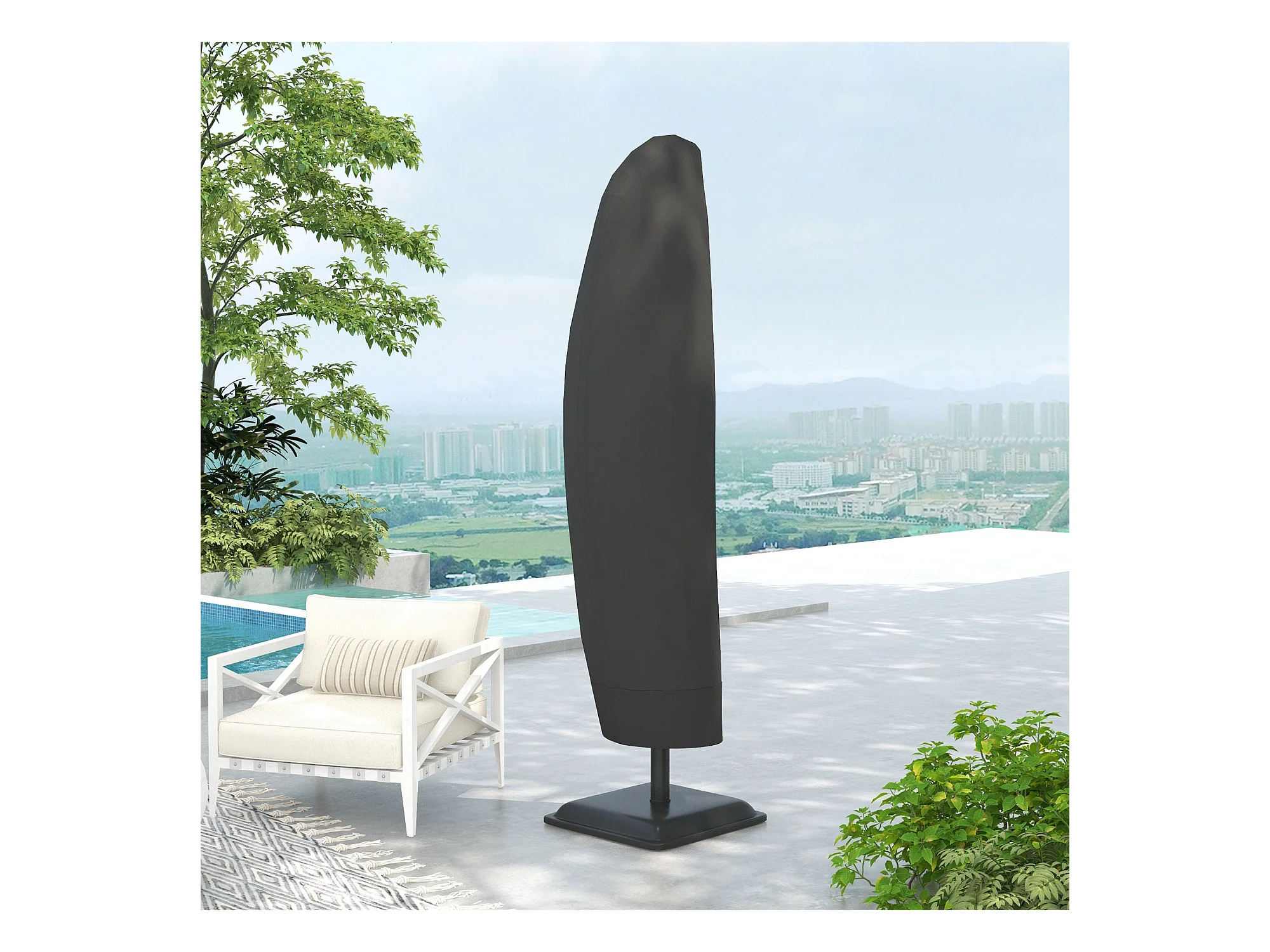 Housse de protection imperméable pour parasol droit avec fermeture éclair et cordon de serrage polyester PVC haute densité noir