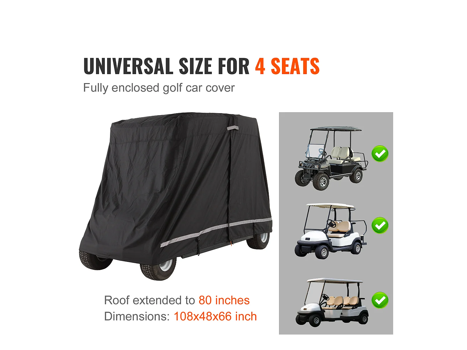 Housse de Voiturette SucceBuy de Golf 4 Passagers 600D Imperméable et Universelle, Ajustement Universel pour la Plupart des Voitures de Club