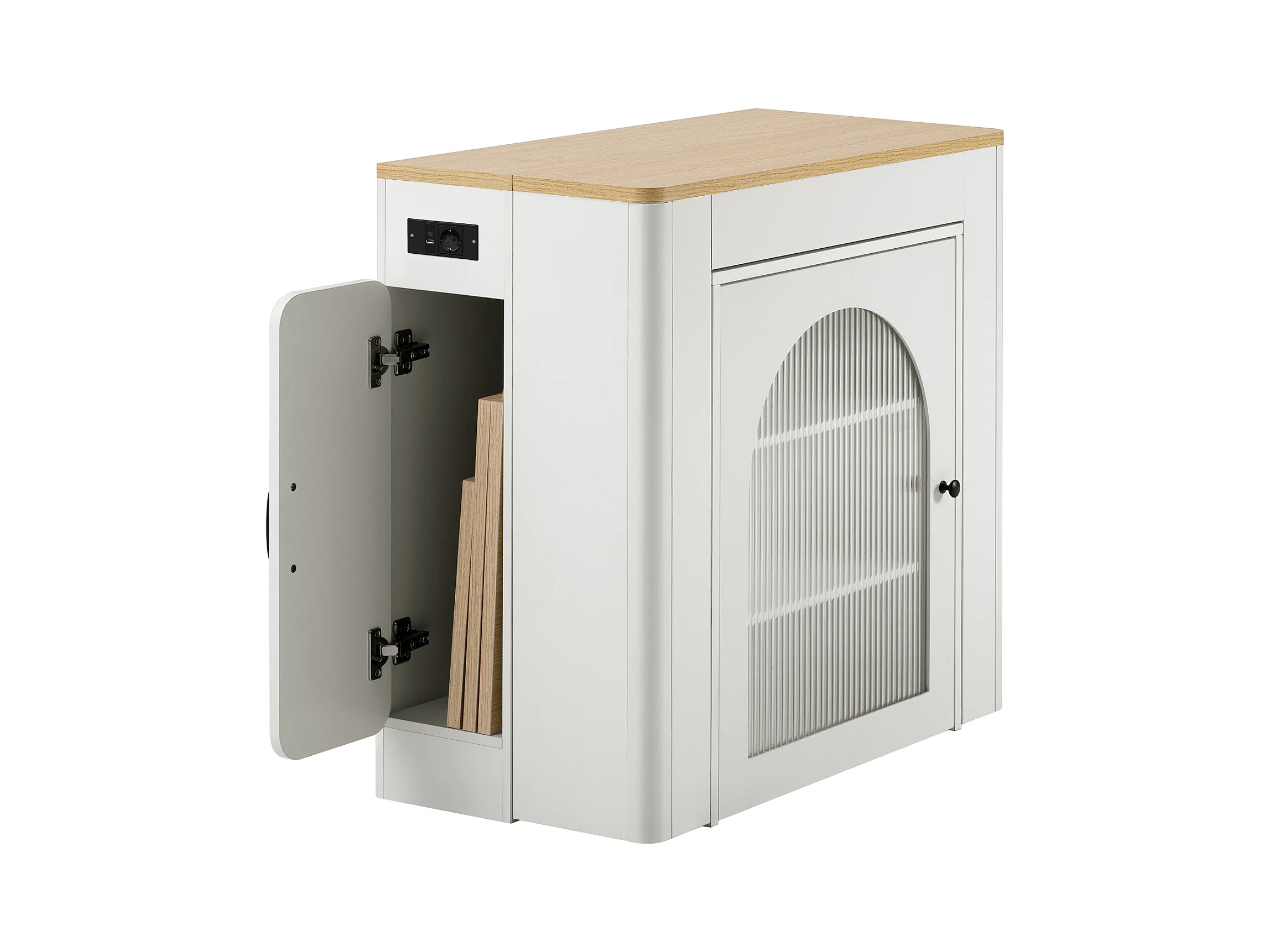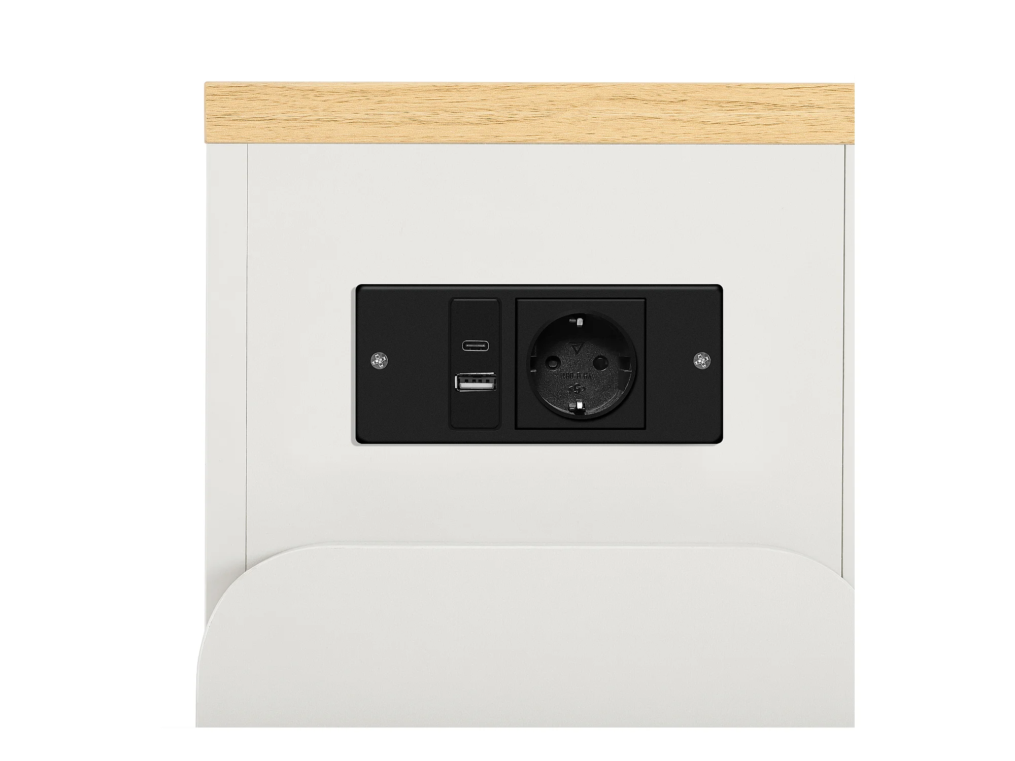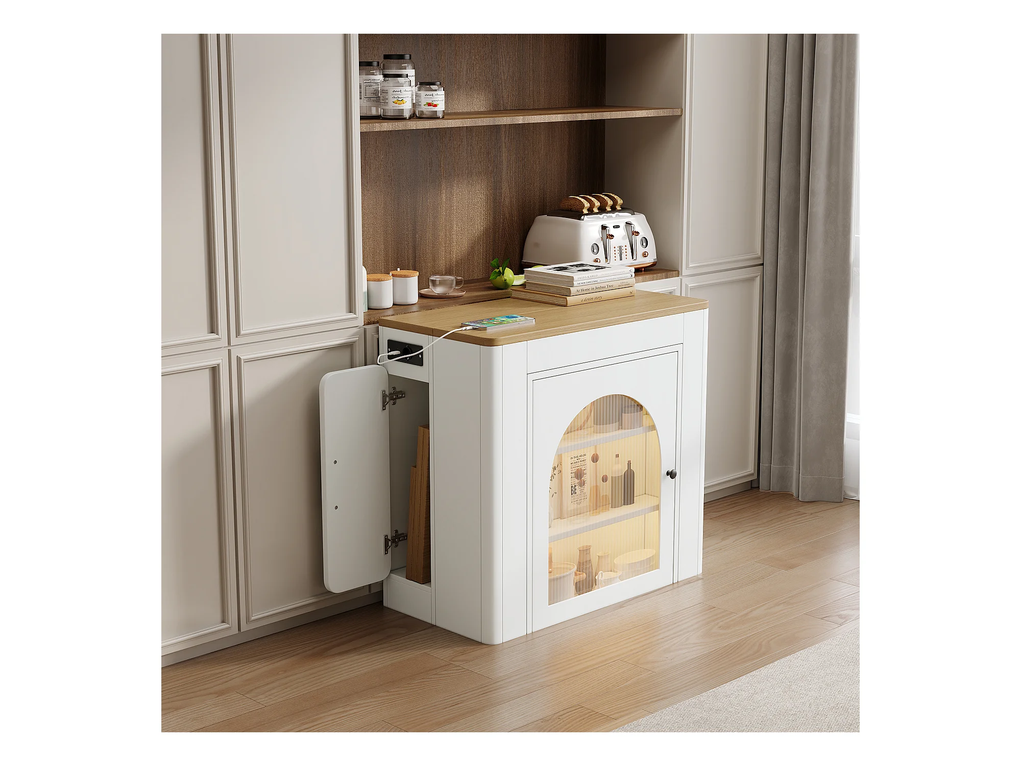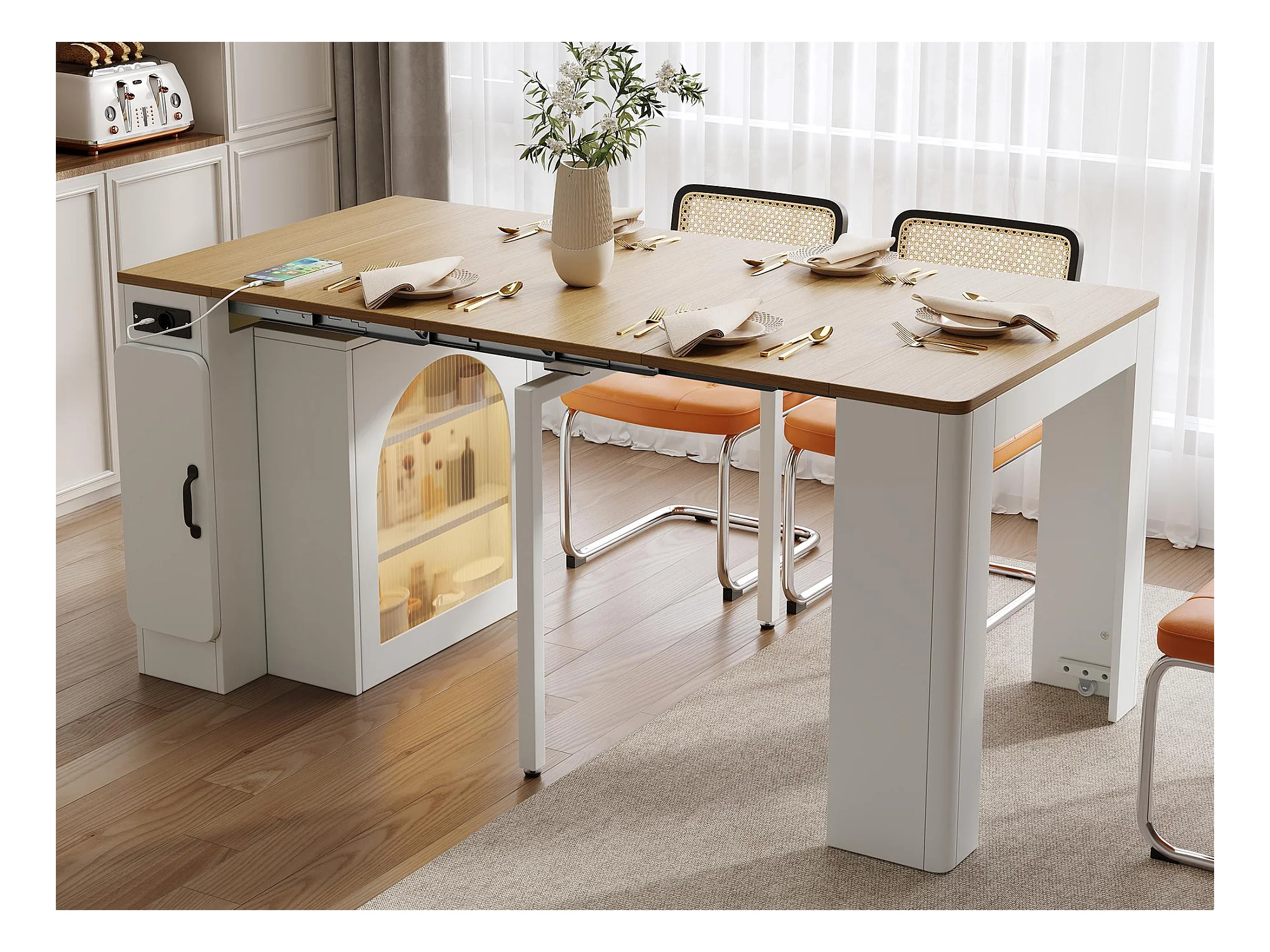 Ilot central de cuisine - avec USB et LED - avec table à manger amovible et extensible - texture du bois - avec 1 porte - naturel + blanc
