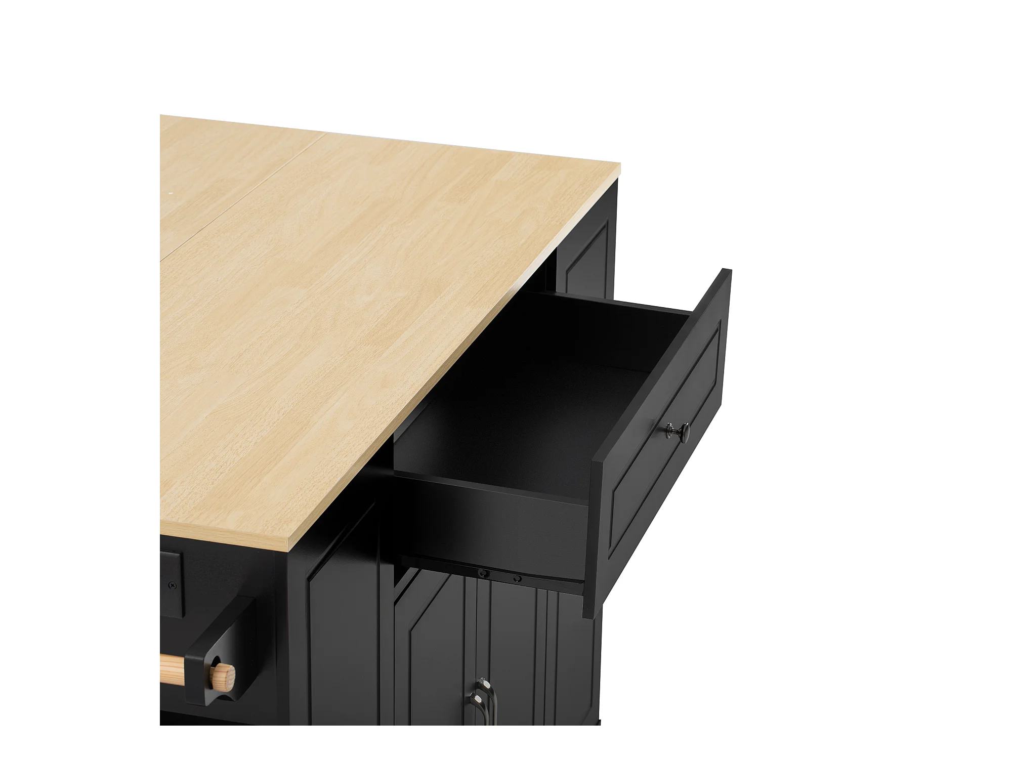 Ilot central de cuisine - chariot à roulette avec plateau extensible - 3 tiroirs et 2 portes - Noir